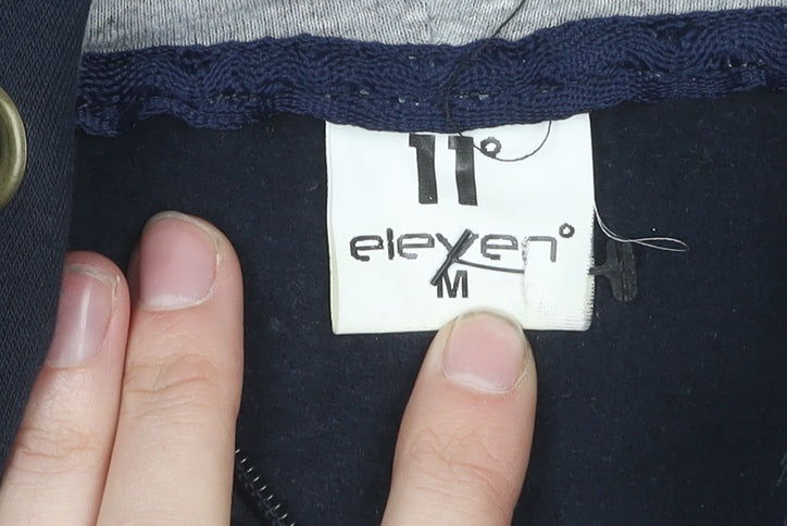 11 Degrees Men's Blue Full Zip Hoodie, M - Logo Accents