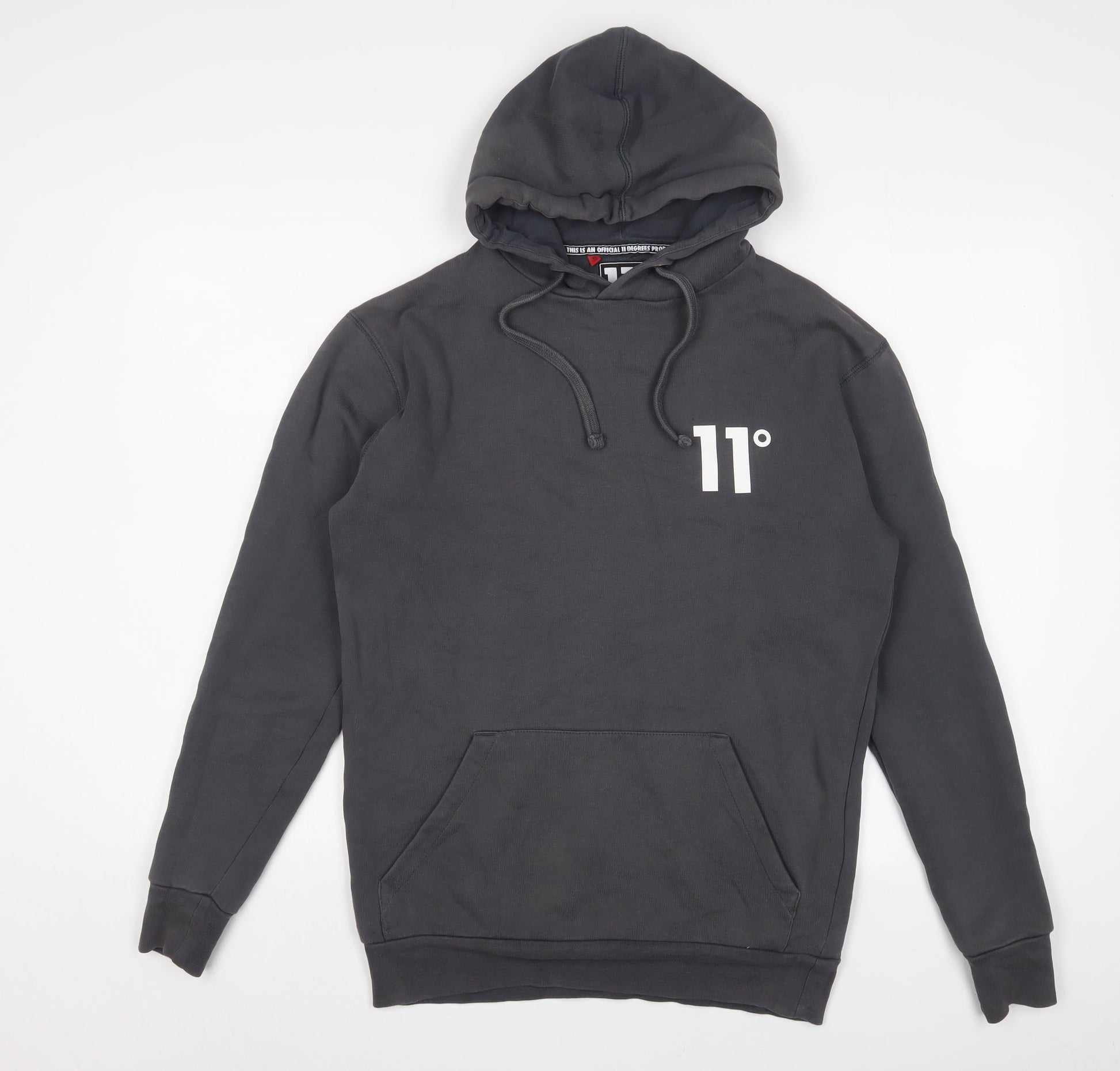 11 degrees Mens Grey Cotton Pullover Hoodie Size S - Logo