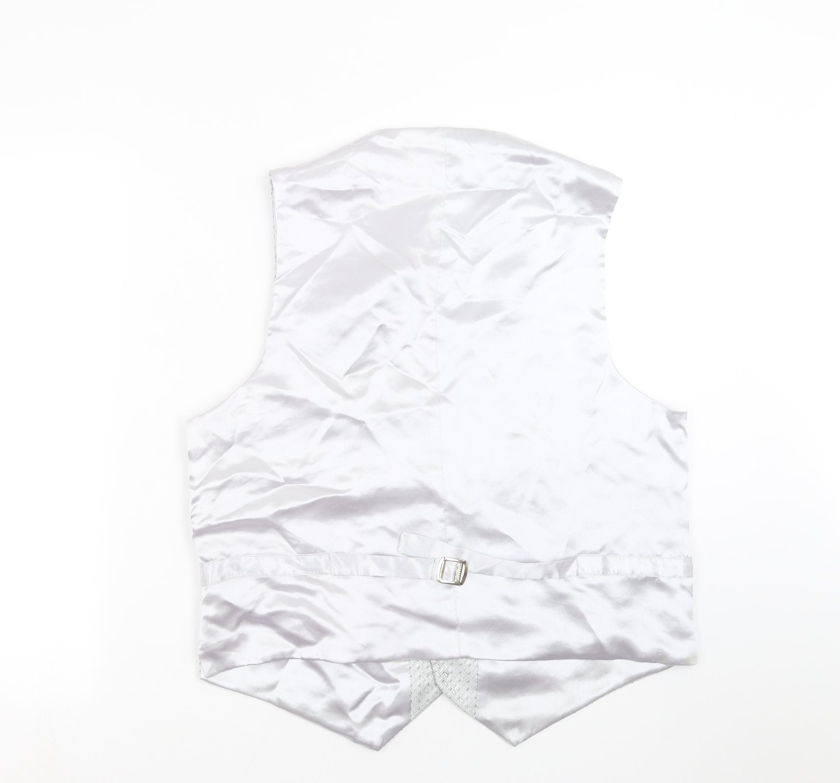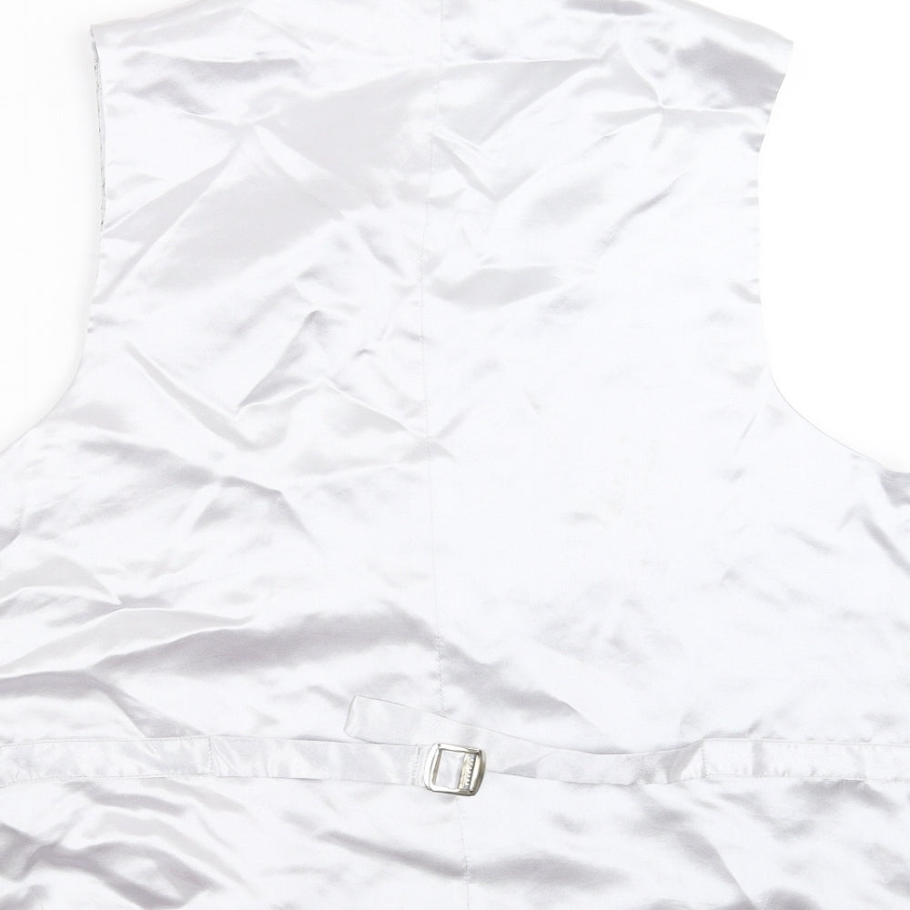 1860 Menswear Mens Silver Geometric Jacket Suit Waistcoat Size L