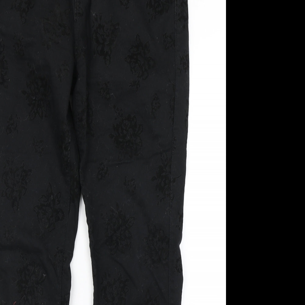 24/7 Womens Black Floral Denim Skinny Jeans Size 12 L29 in