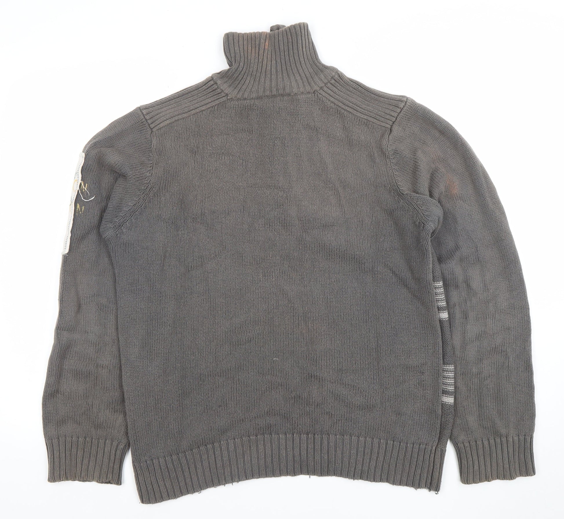 4 YOU JNS Men’s Grey Striped 1/4 Zip High Neck Cotton Jumper Size M