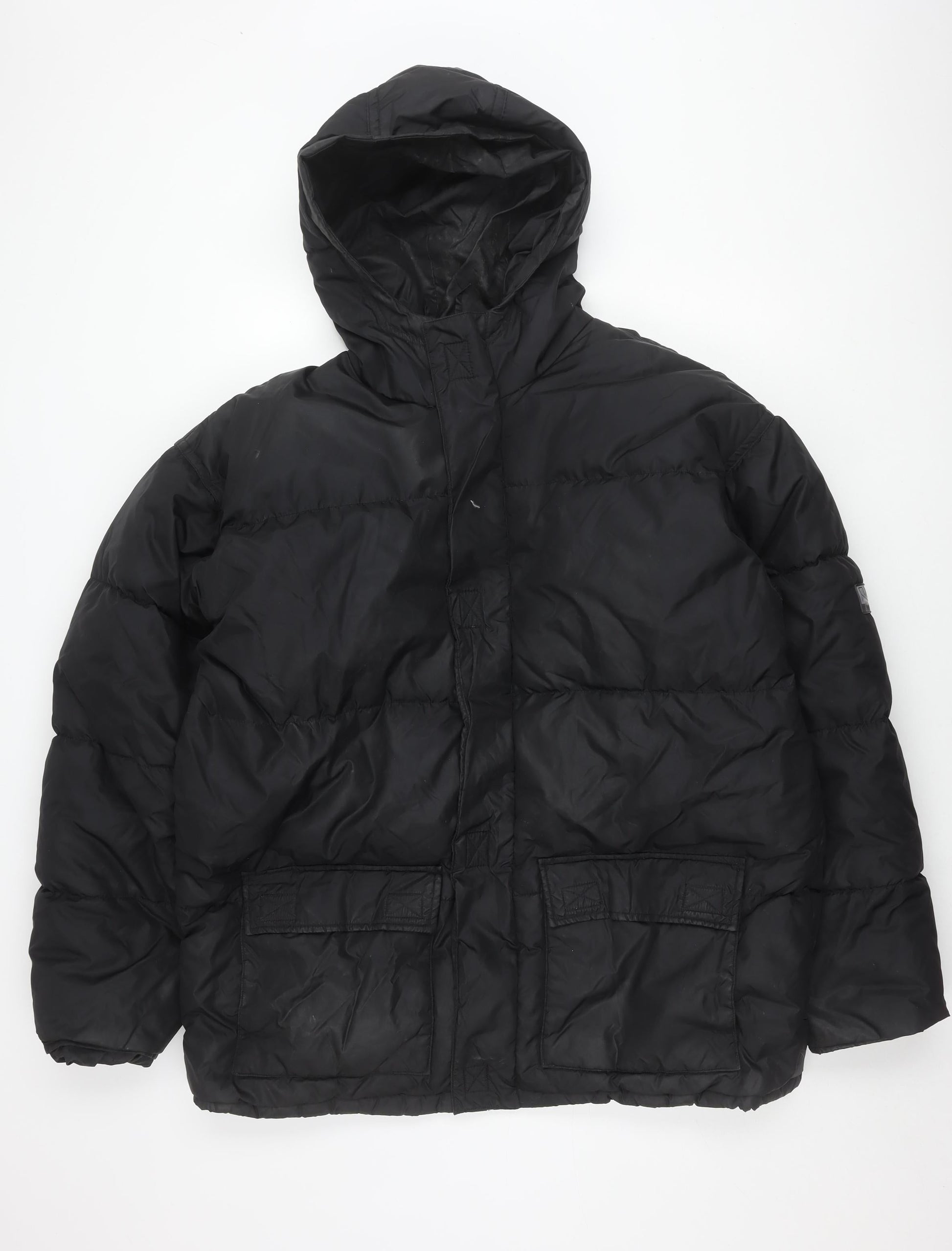 4 You Mens Black XL Winter Puffer Jacket Hooded Nylon Down