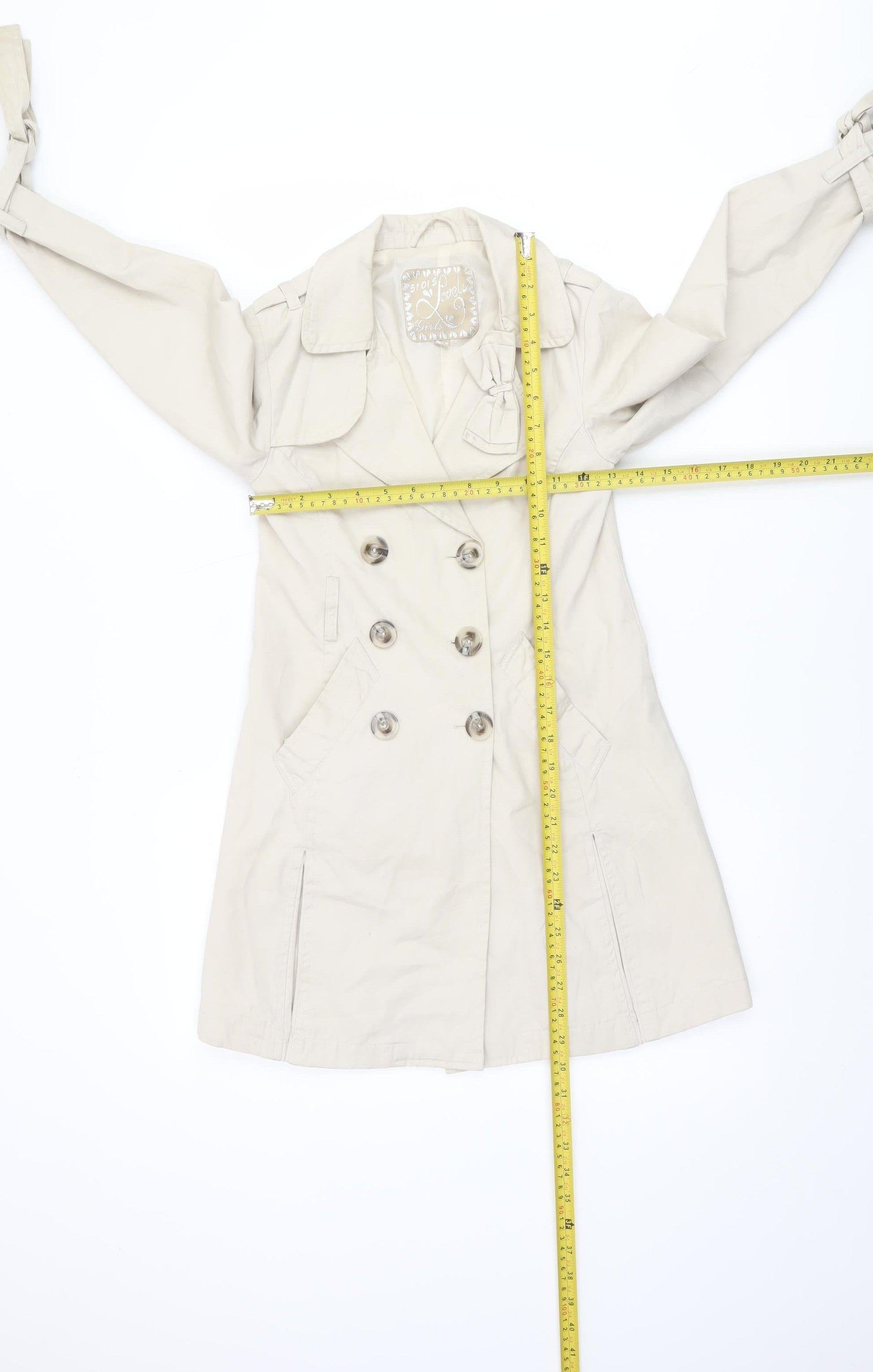 51015 Lovely Girls Beige Trench Coat 9 Years Double-Breasted Mid-Length