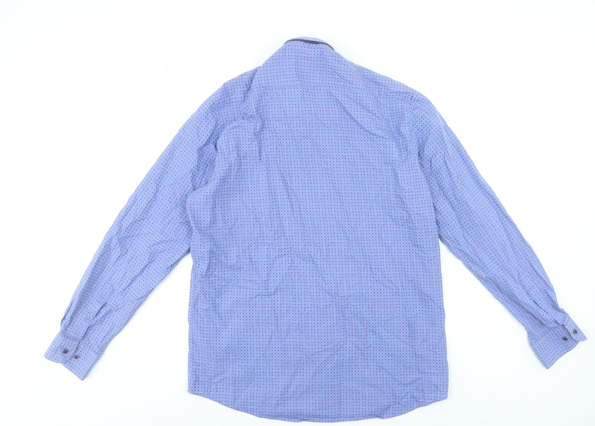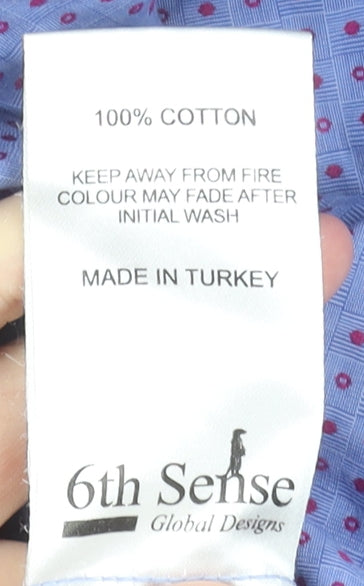 6th Sense Men's Blue Geometric Egyptian Cotton Formal Shirt XL