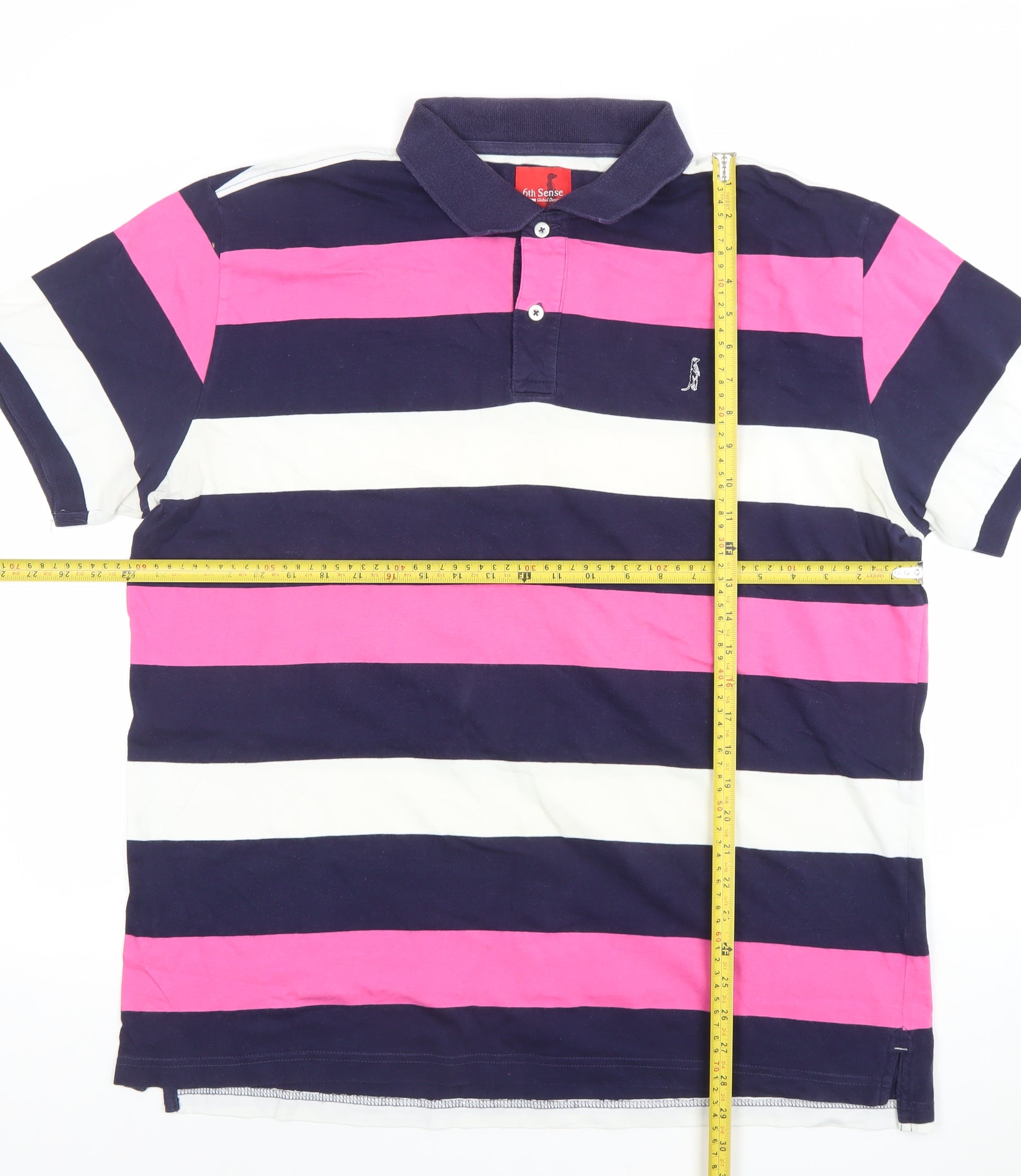 6th Sense Men's Multicoloured Striped Cotton Polo Shirt XXL