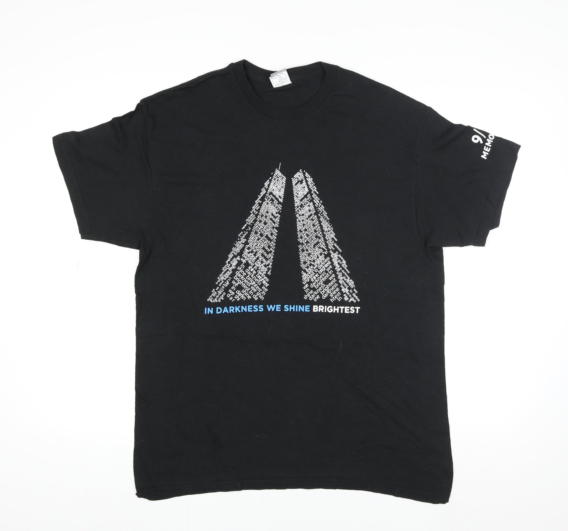 9/11 Memorial Black Graphic Men's Large Cotton T-Shirt