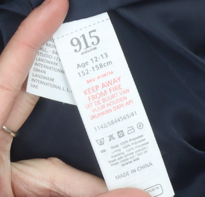 915 Generation Girls Blue Puffer Jacket Age 12-13 Years Quilted Winter Coat