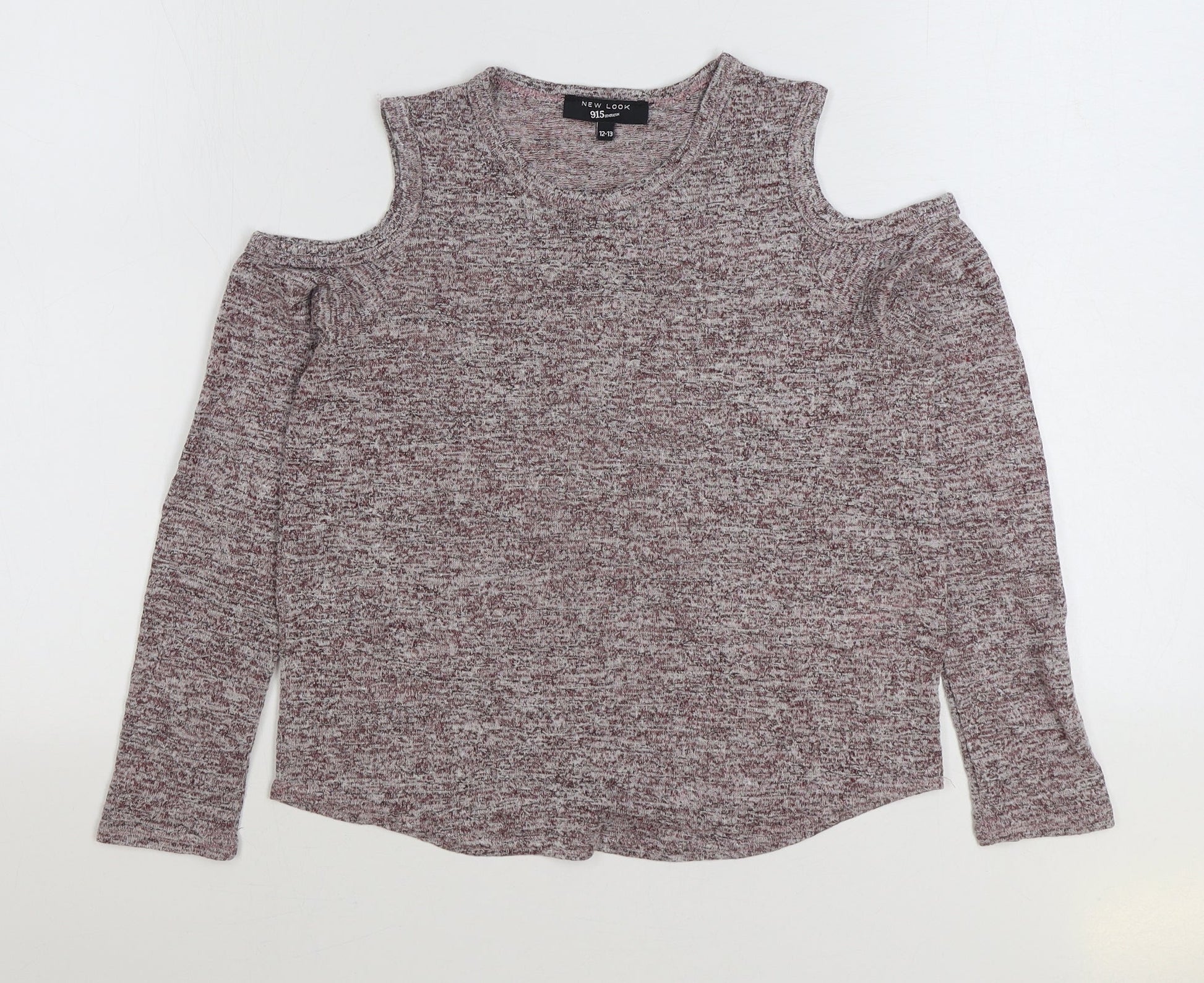 915 Generation Girls Purple Polyester Basic T-Shirt Size 12-13 Years Round Neck Pullover - Open Shoulder