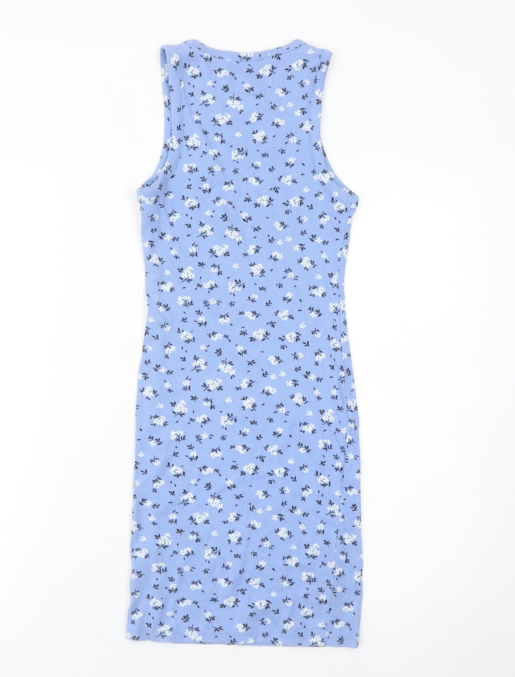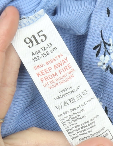 915 Girls Blue Floral Tank Dress Age 12-13 Jersey Cotton Knee Length