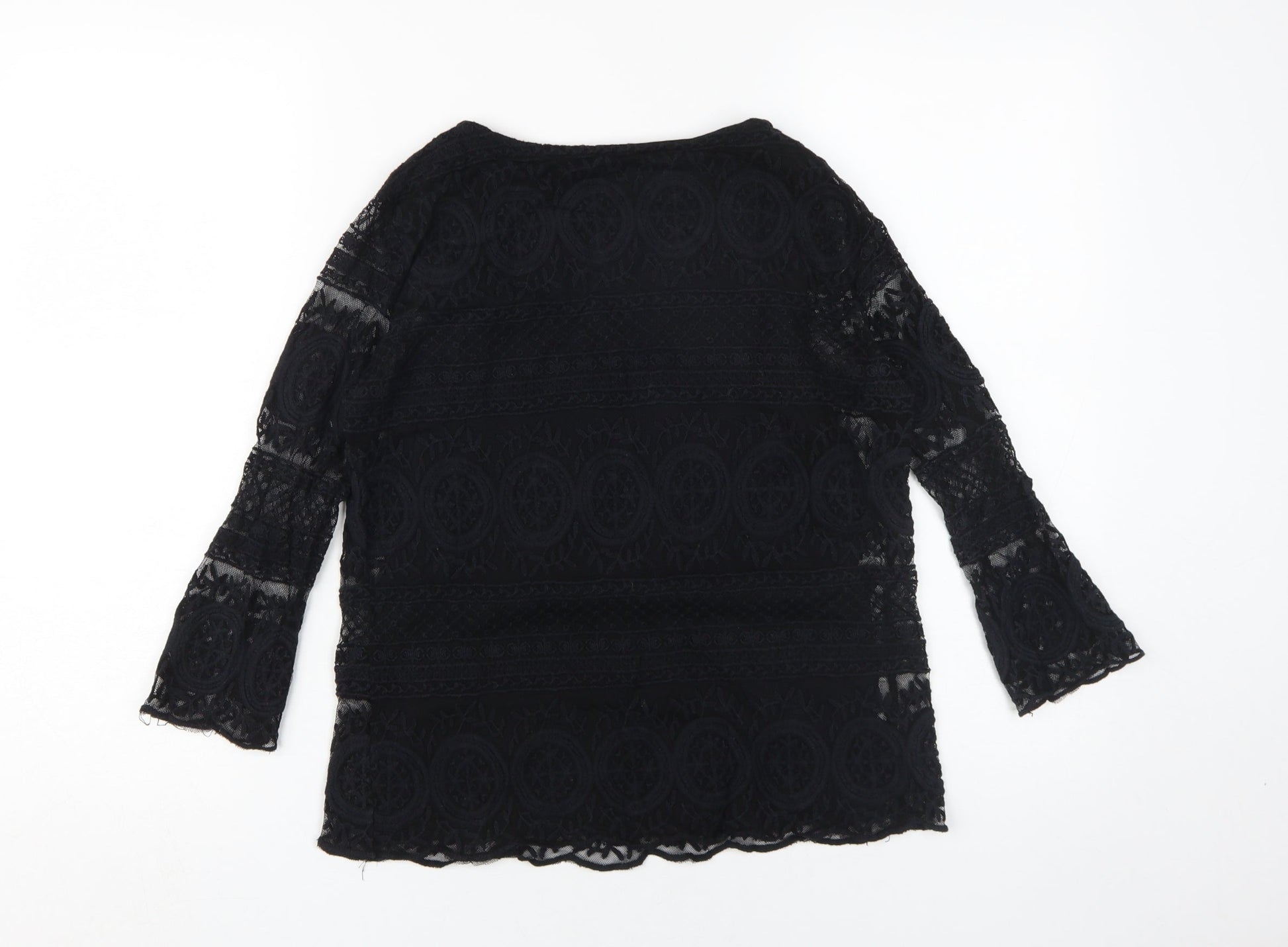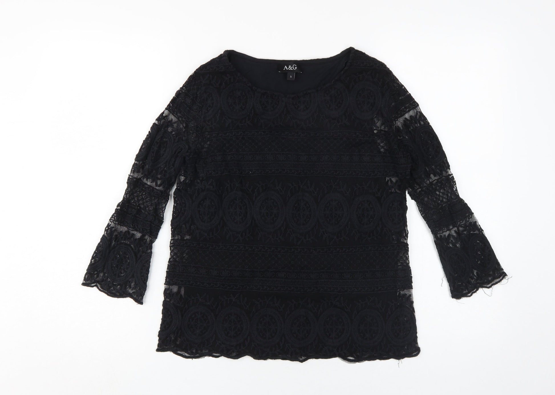 A&G Women's Black Lace Blouse S Classic Bell Sleeve