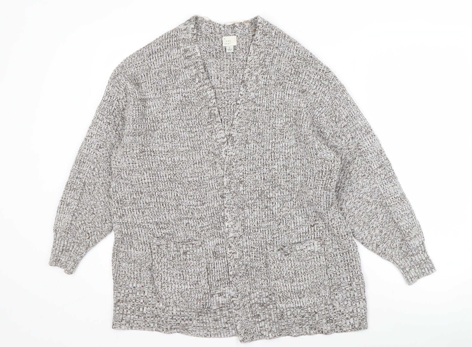 A New Day Women's Grey Cardigan L V-Neck Knit