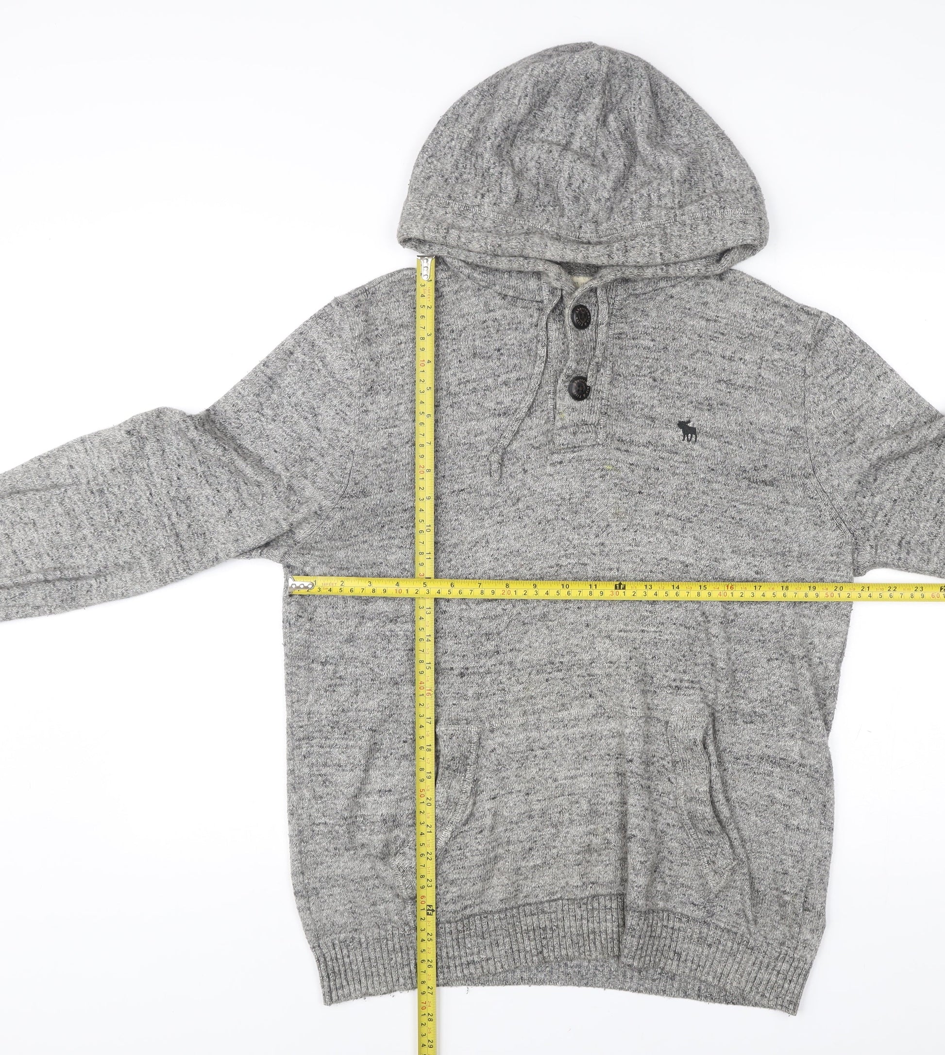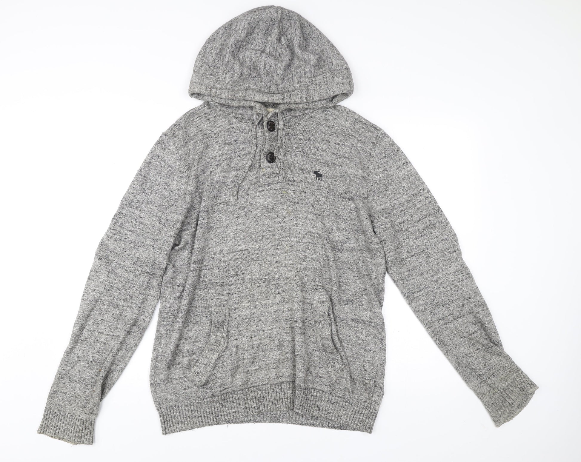 Abercrombie & Fitch Men’s Grey Henley Hoodie Medium Hooded Knit