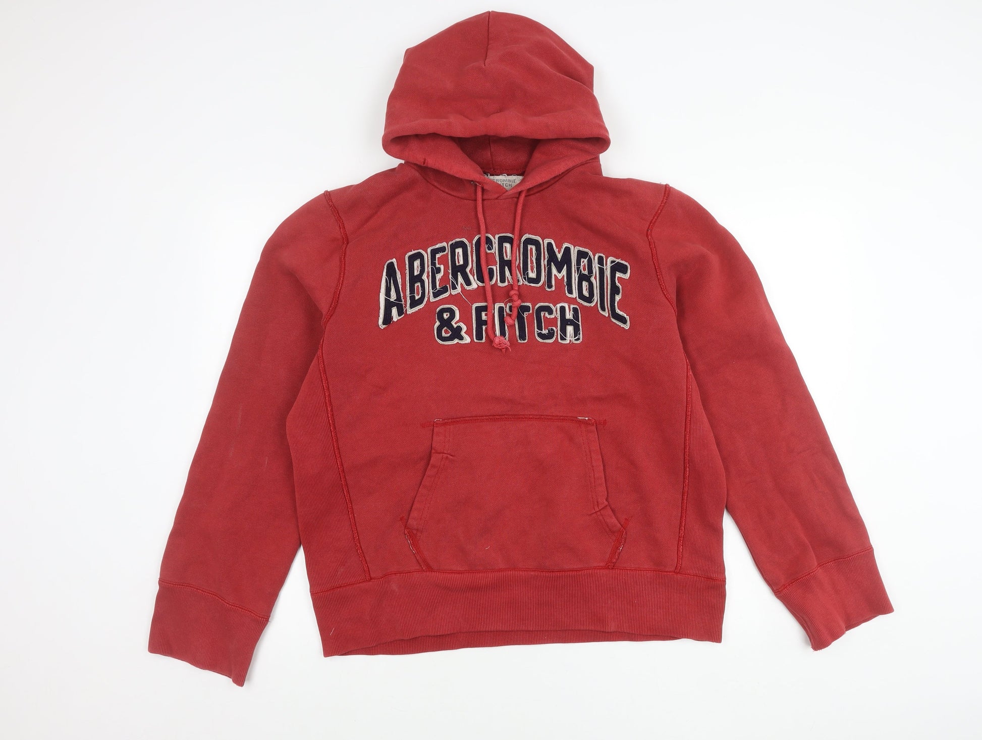 Abercrombie & Fitch Men’s Red Pullover Hoodie L Logo Graphic