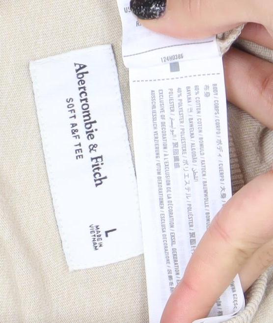- Keywords: Abercrombie & Fitch men's t-shirt beige Henley long sleeve cotton blend lightweight breathable logo casual wear regular fit