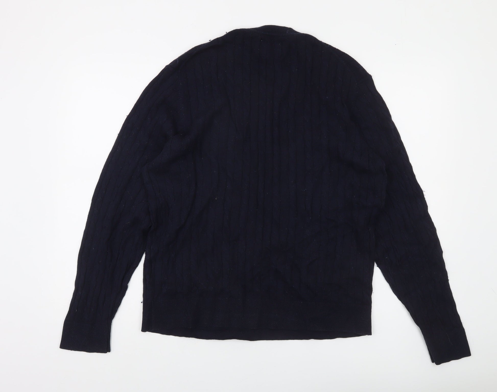 Abercrombie & Fitch Men's Blue Cable-Knit Crew Jumper Size L