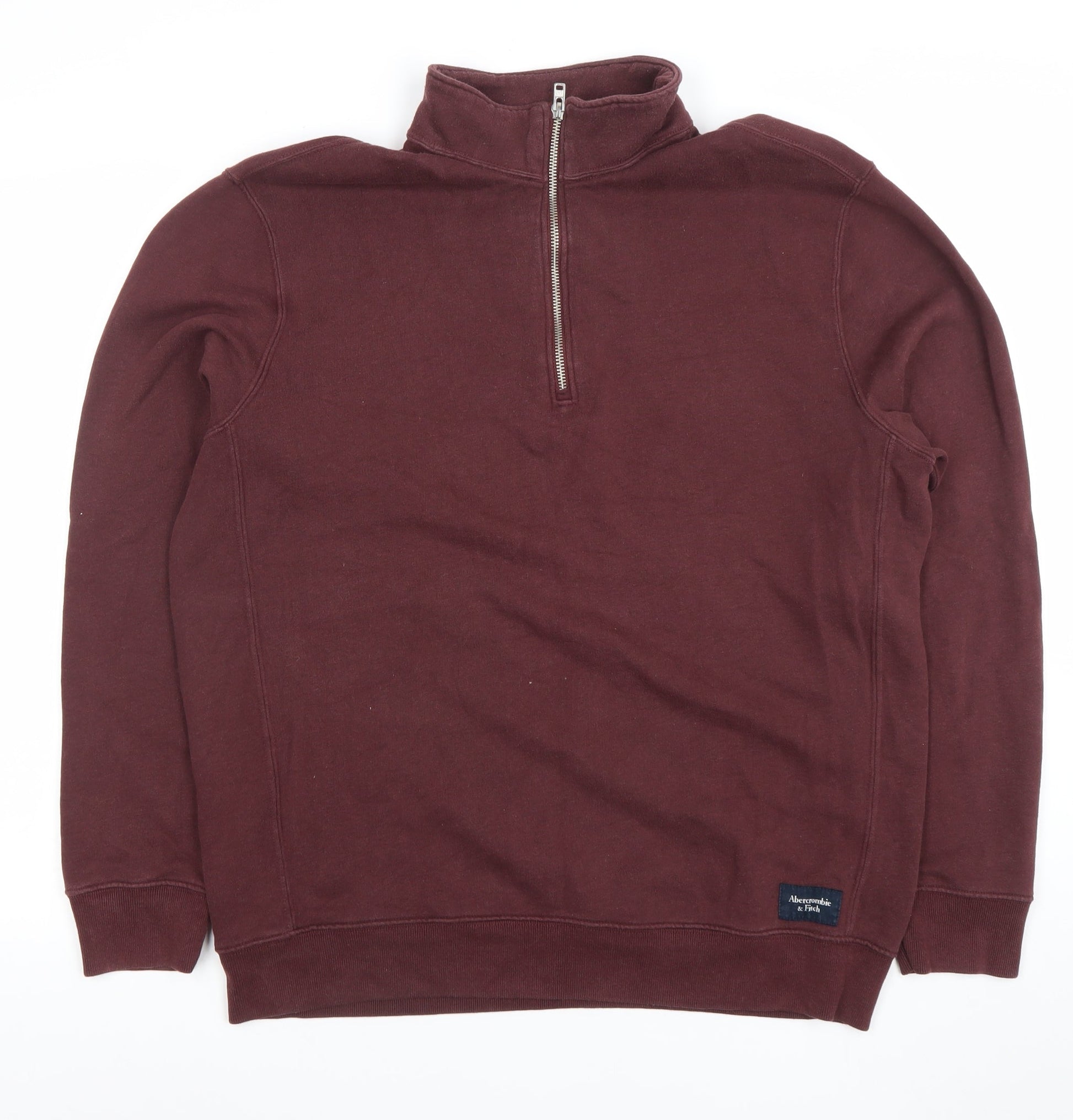 Abercrombie & Fitch Men's Brown L Half Zip Fleece Sweatshirt