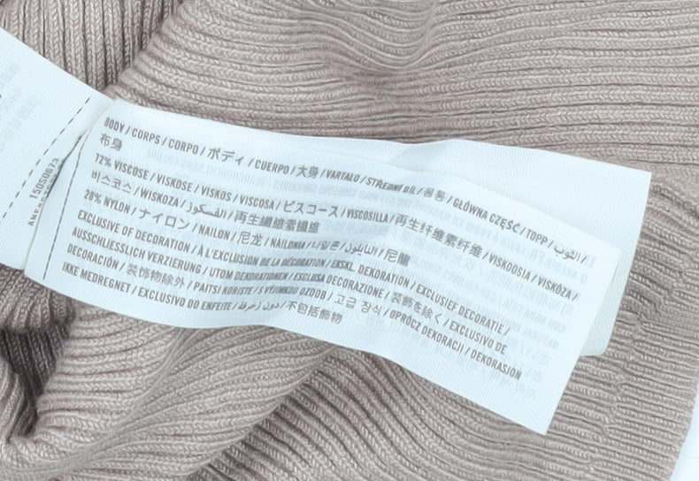 Abercrombie & Fitch Women Beige Knit Cardigan M V-Neck Short Sleeve
