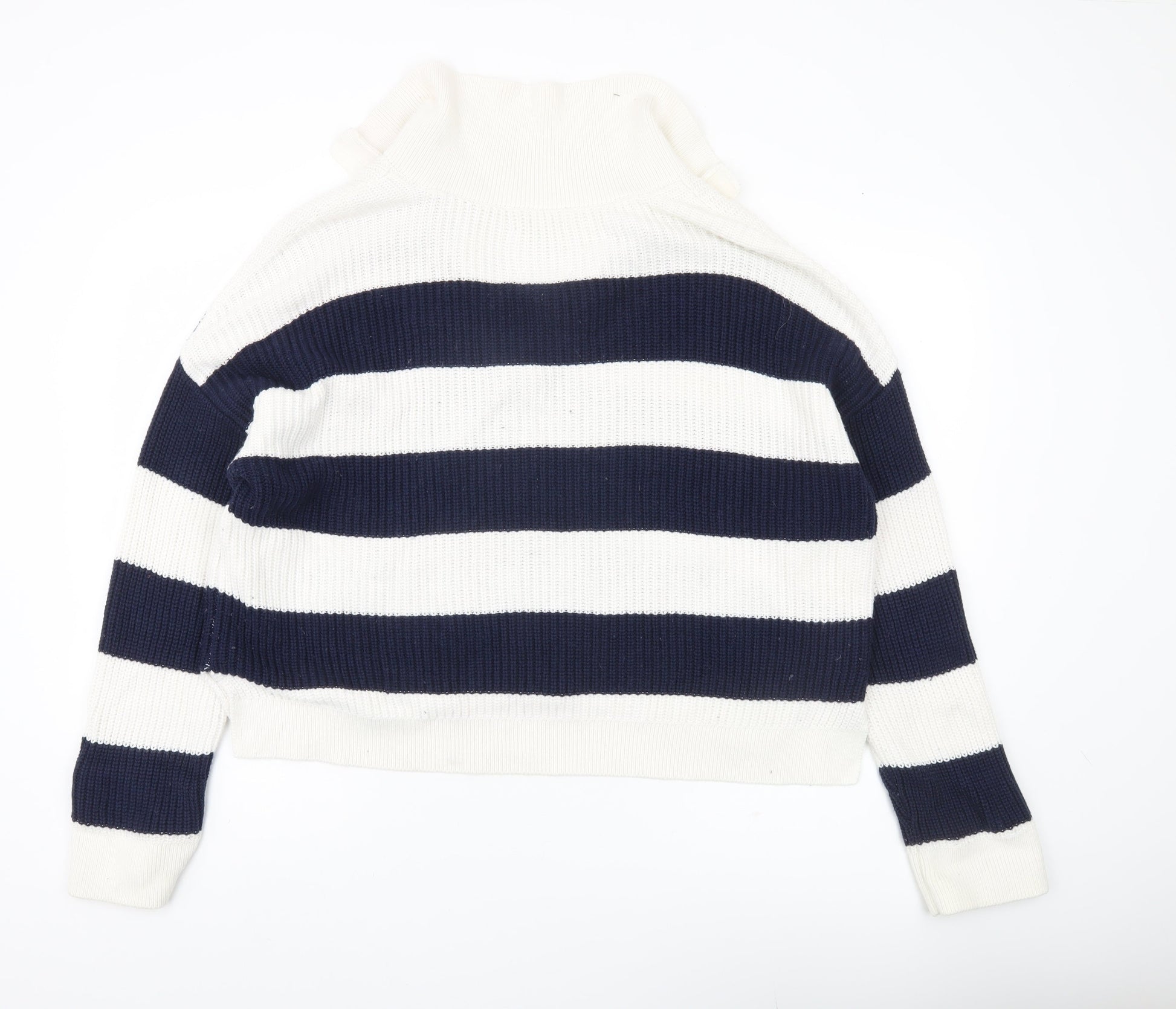 Abercrombie & Fitch Women’s Blue White Striped Collared Jumper L