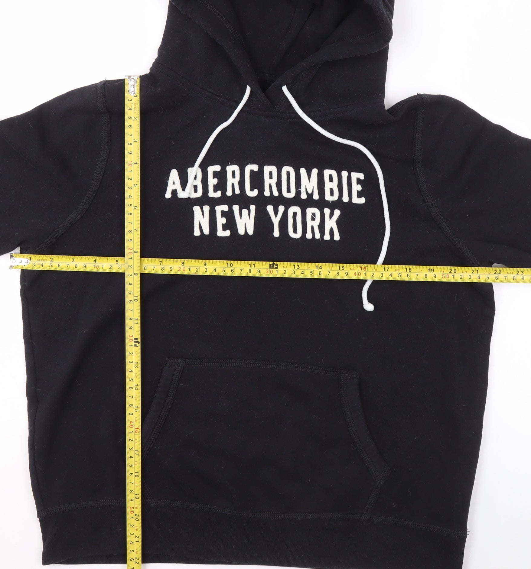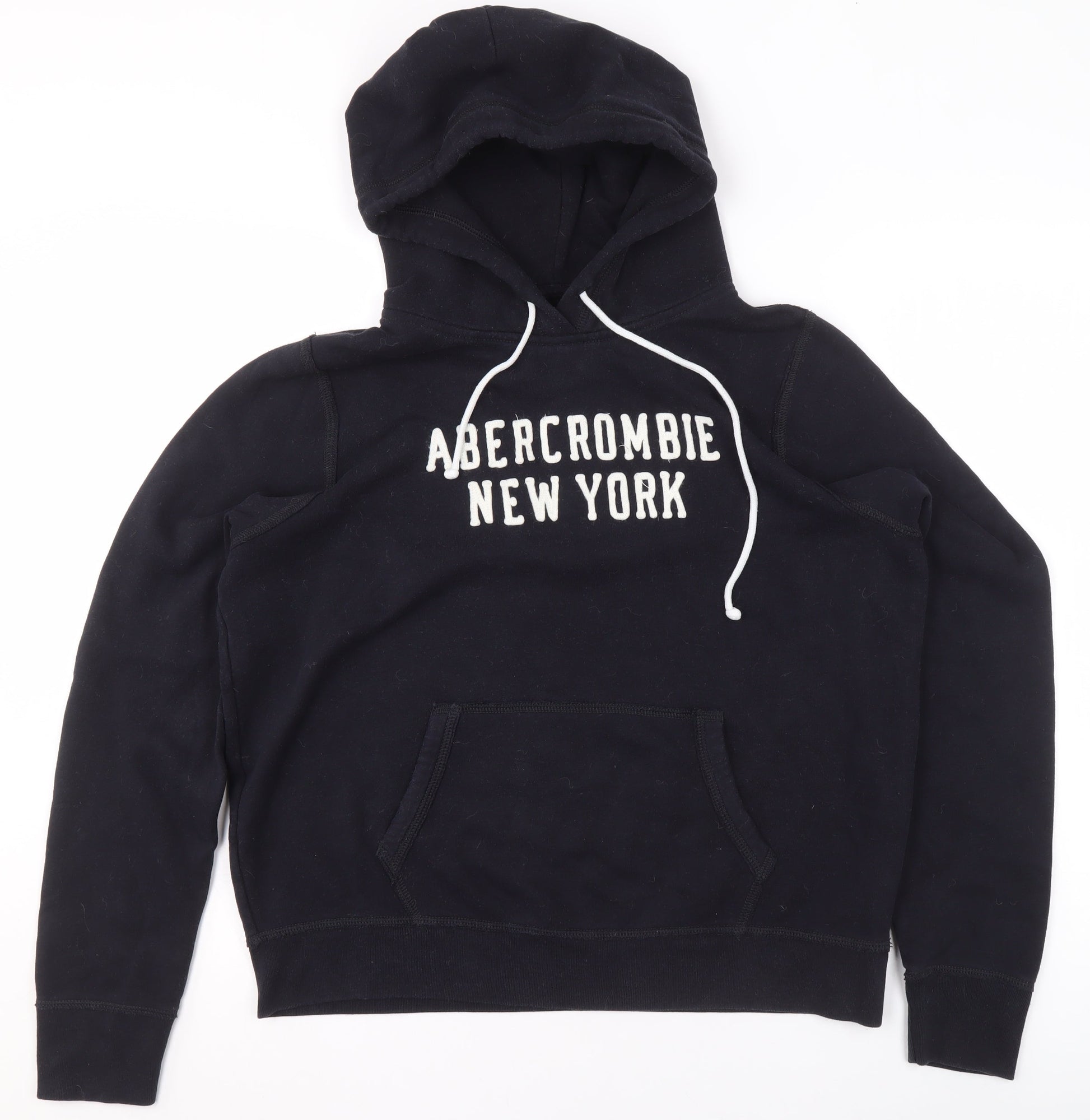 Abercrombie & Fitch Women's Black Pullover Hoodie L Logo New York
