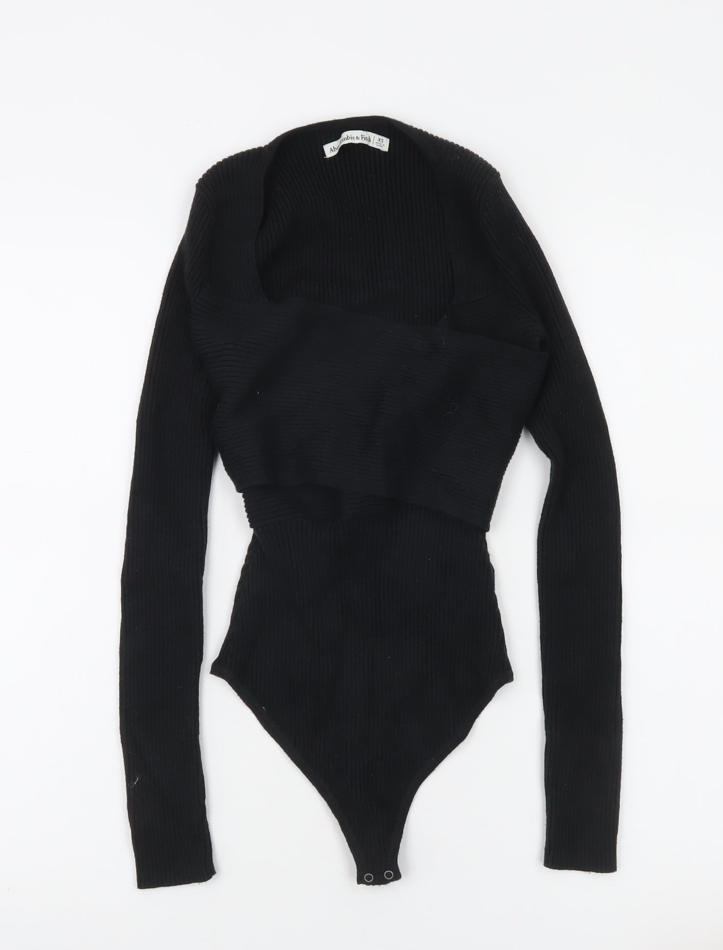 Abercrombie & Fitch Women's Black Ribbed Long Sleeve Bodysuit XS