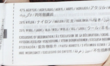 - Material Breakdown: 47% Acrylic 28% Nylon 25% Wool