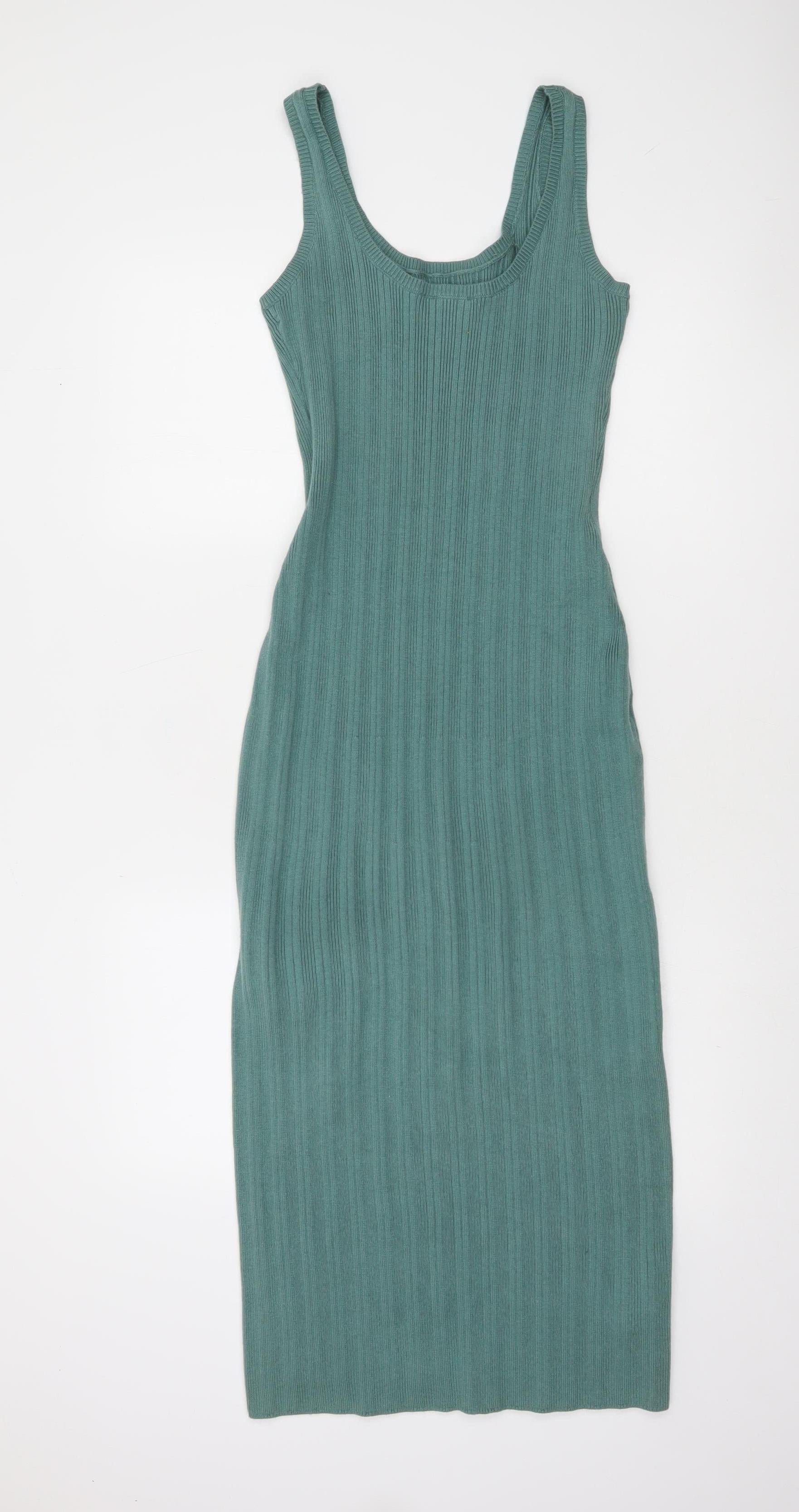 Abercrombie & Fitch Women's Green Ribbed Bodycon Midi Knit Dress Size S