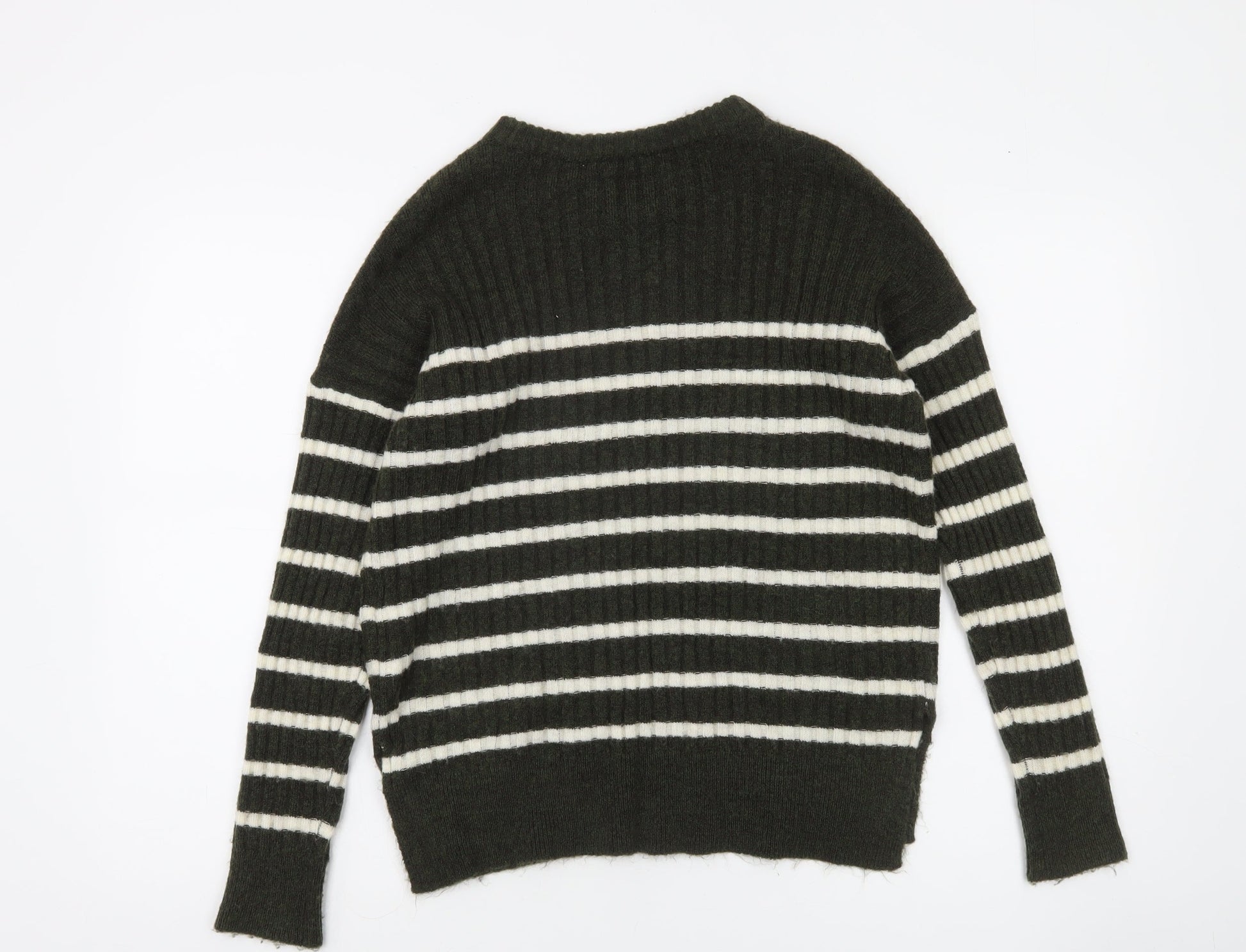 Abercrombie & Fitch Women's Green Striped Wool Blend Pullover Jumper XS