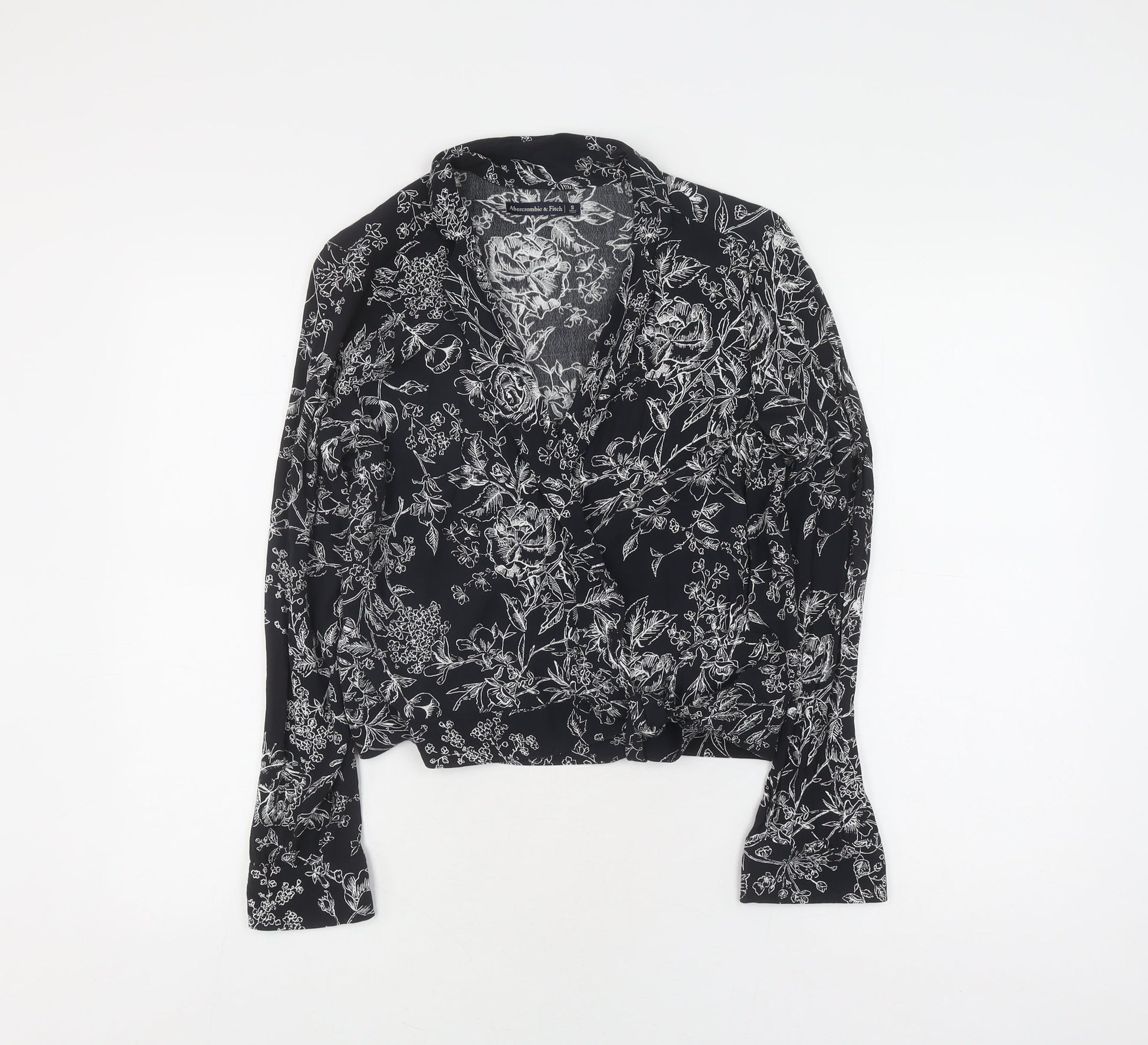 Abercrombie & Fitch Women's Small Black Floral Wrap Blouse