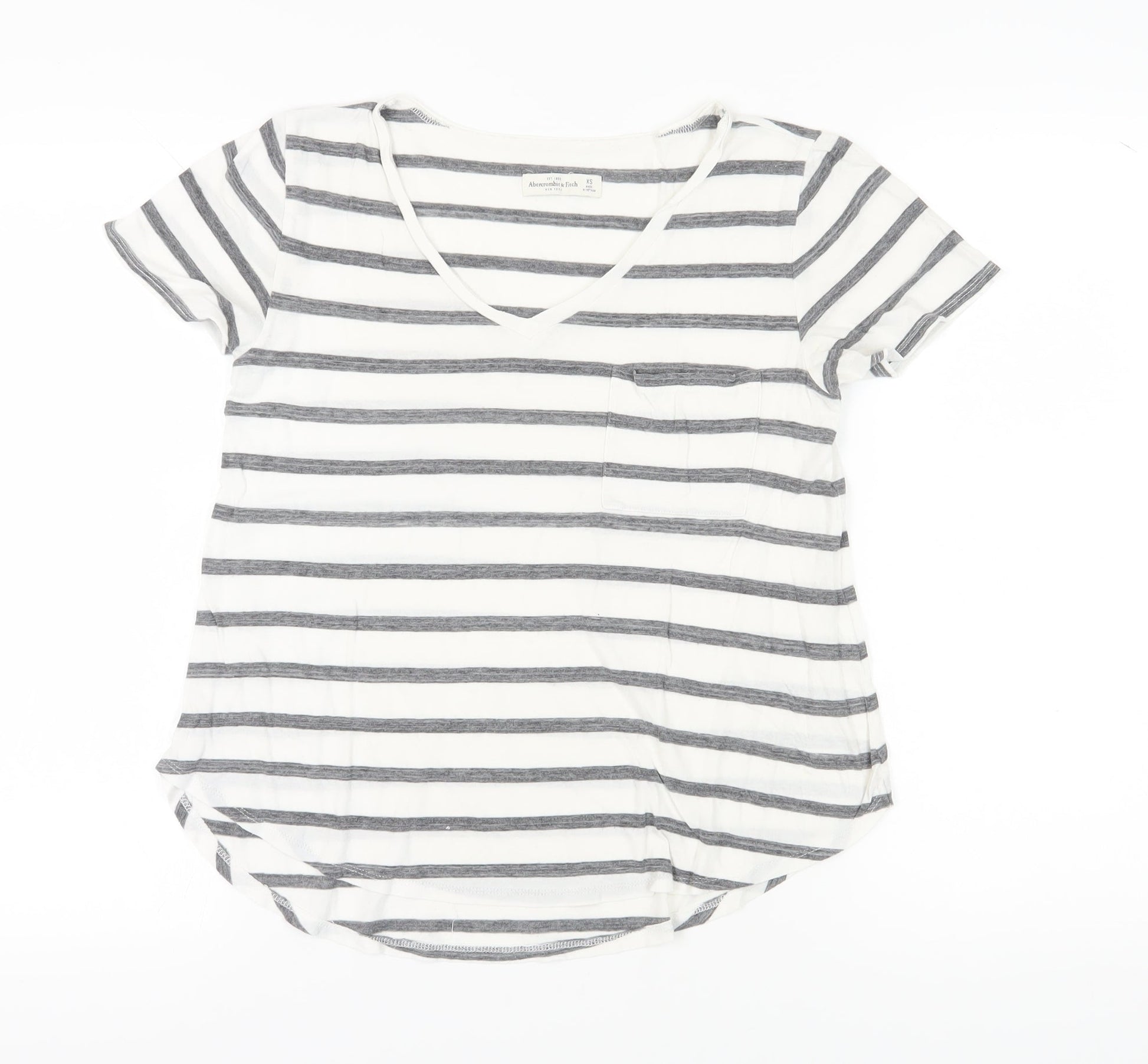 Abercrombie & Fitch Women's White Striped T-Shirt XS