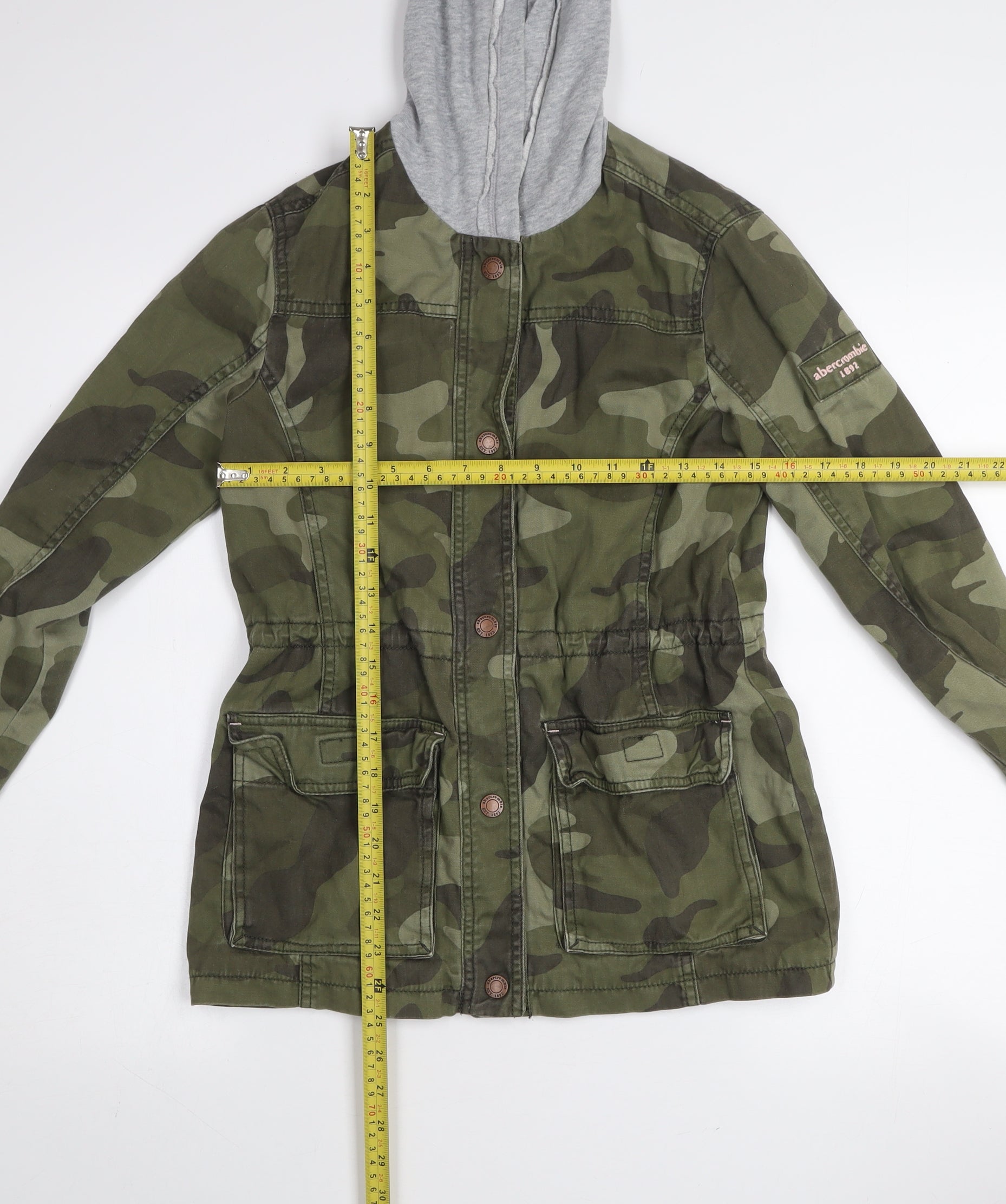 Abercrombie Kids Girls Green Camo Hooded Military Jacket 13-14 Years