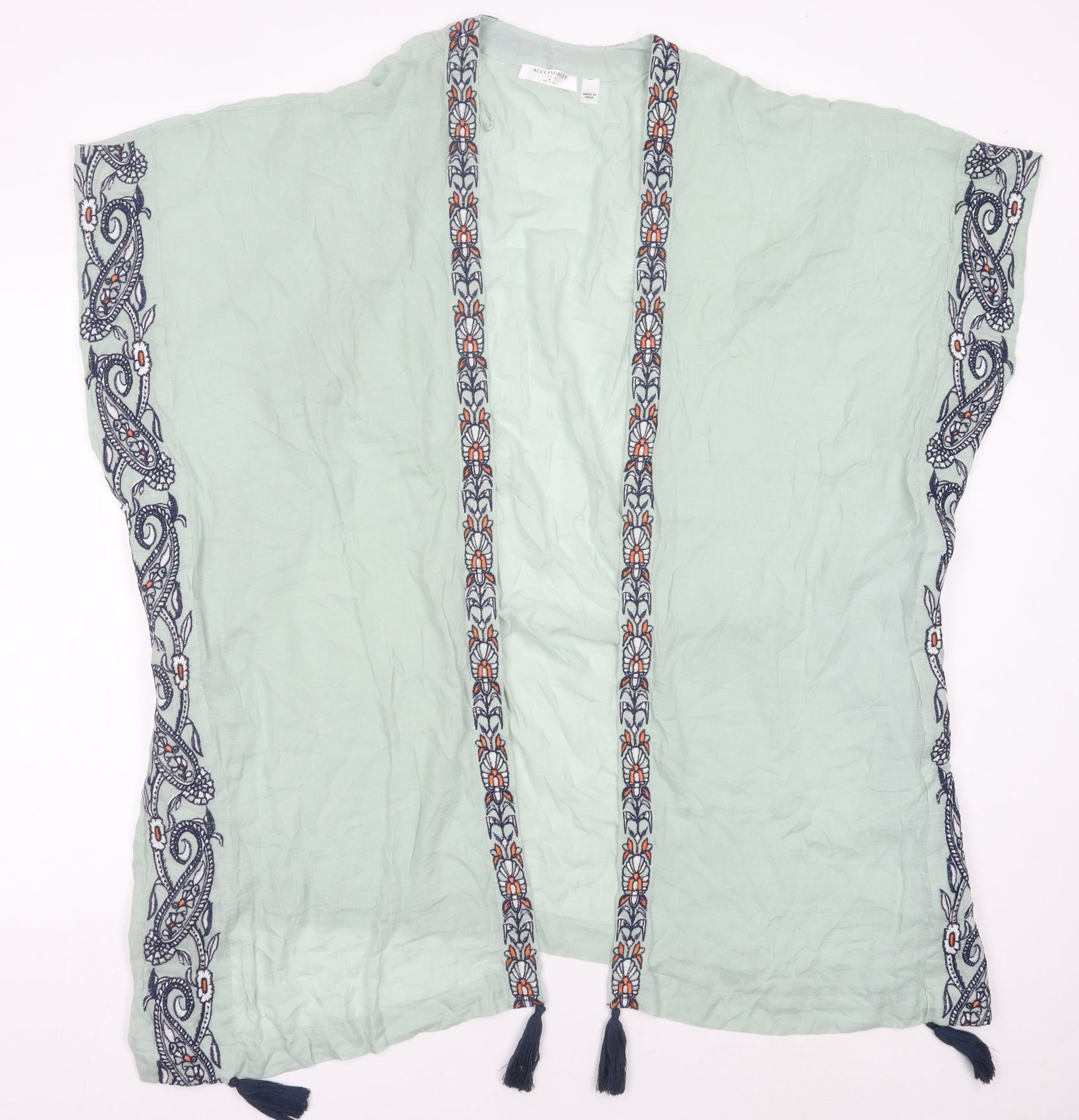 Accessorize Women’s Green Cotton Kimono Blouse UK 12 Boho Tassel