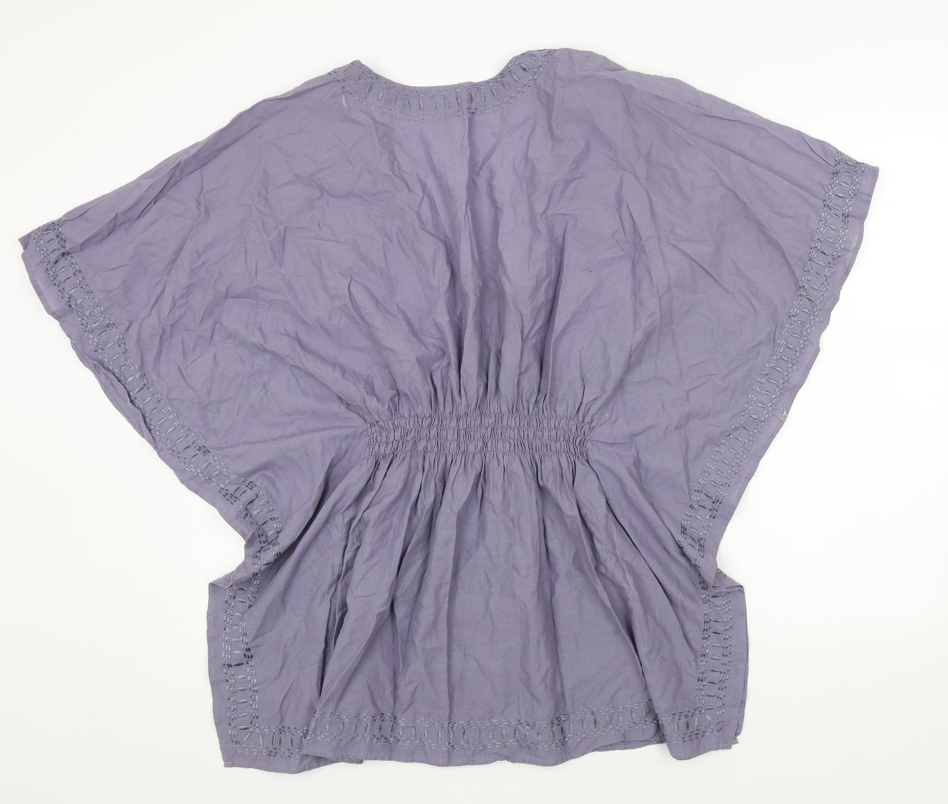 Accessorize Womens Blue Cotton Basic Blouse Size S V-Neck