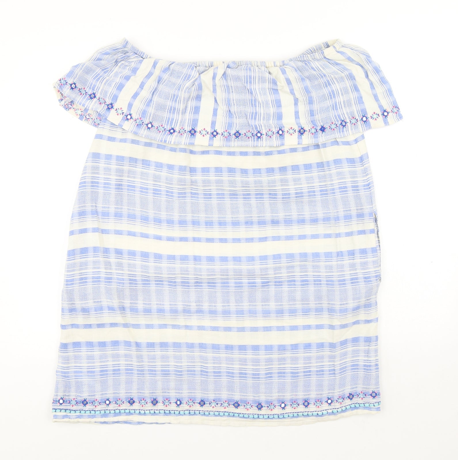Accessorize Womens Blue Striped Cotton A-Line Size M Off the Shoulder