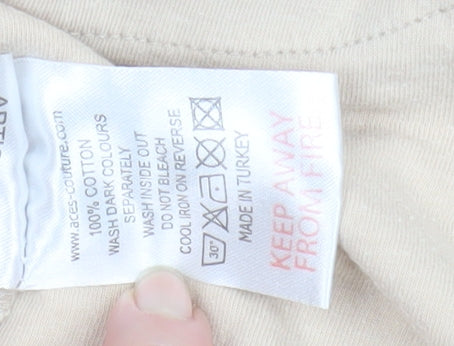 Aces Couture Men Beige Black Long Sleeve Crew Neck T-Shirt Size L