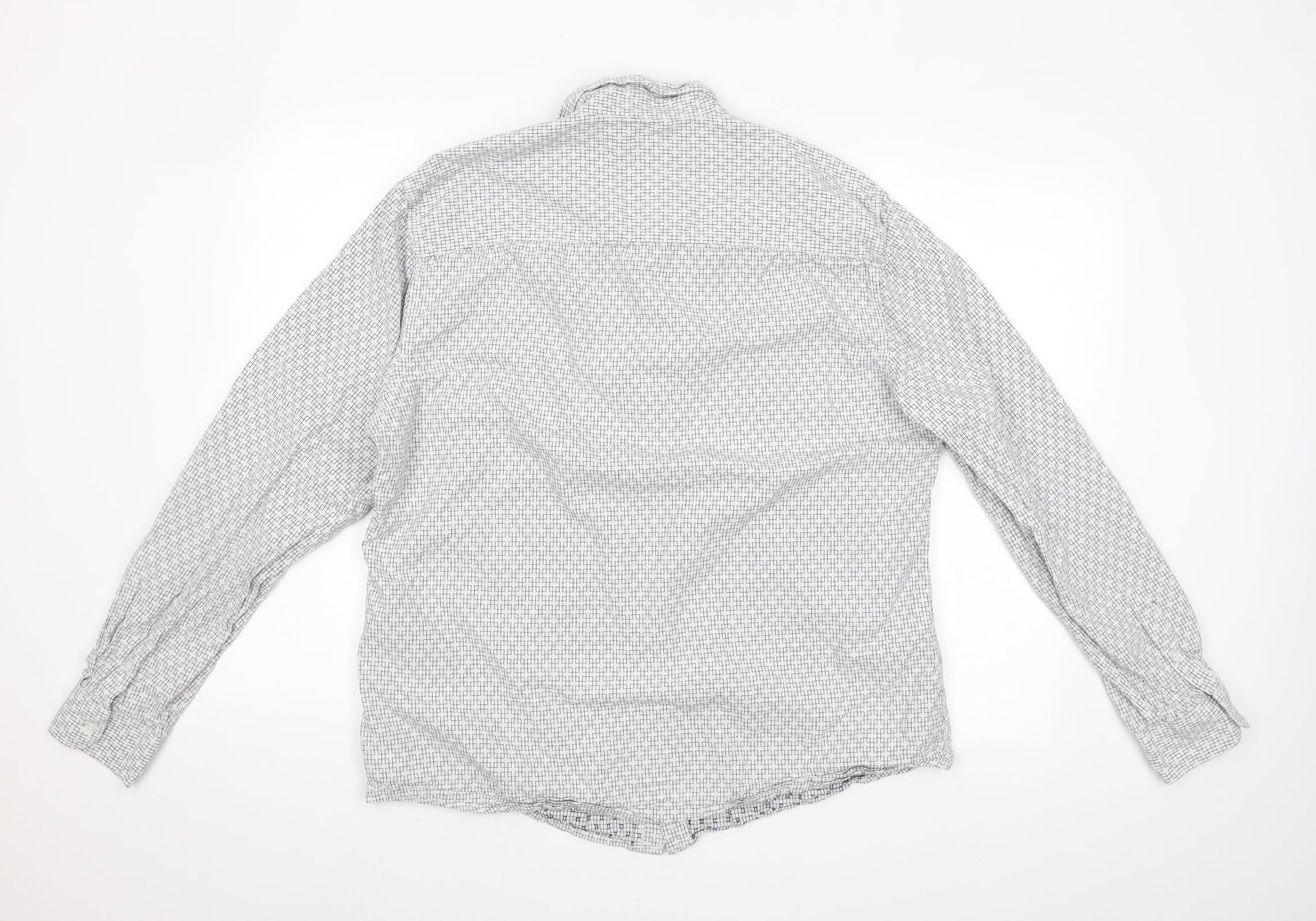 ACW 85 Mens White Geometric Cotton Button-Up Size XL Collared Button