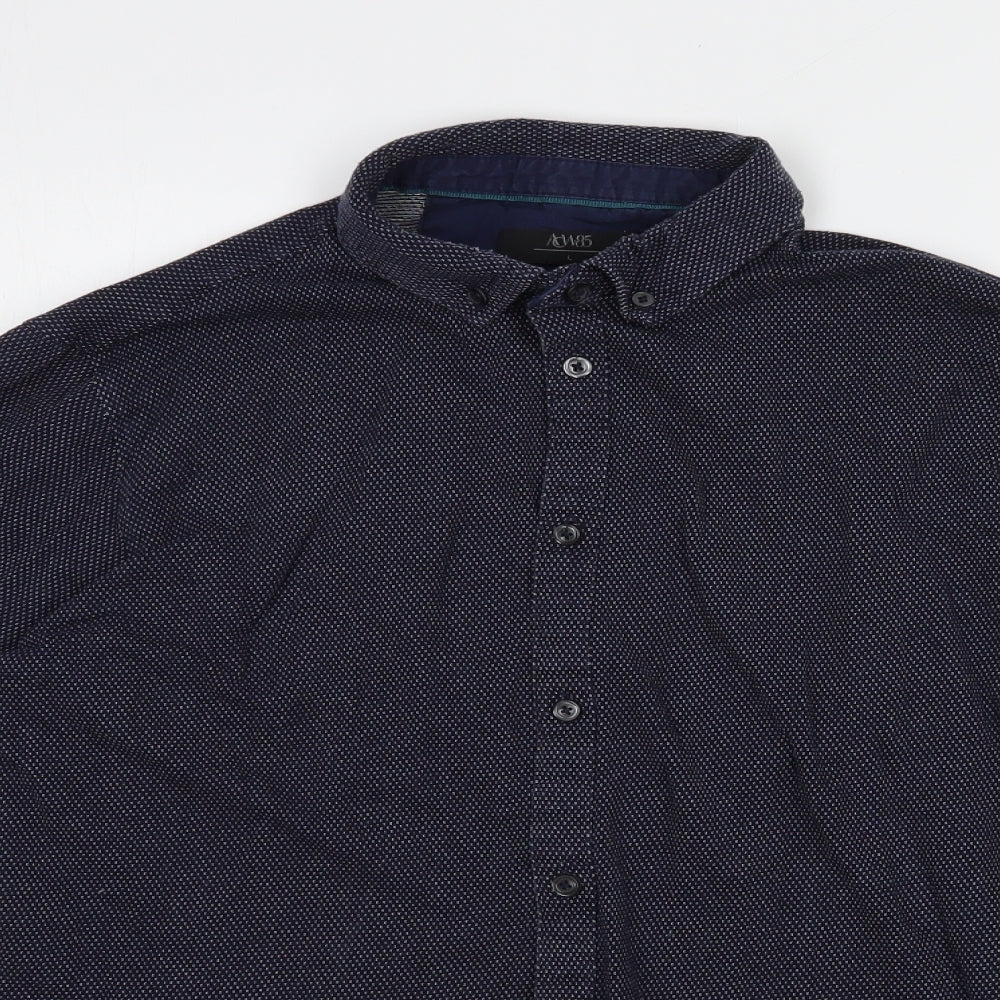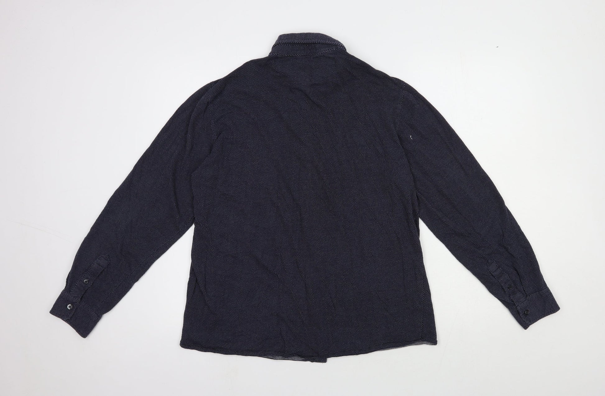 Acw85 Mens Blue Geometric Cotton Button-Up Size L Collared