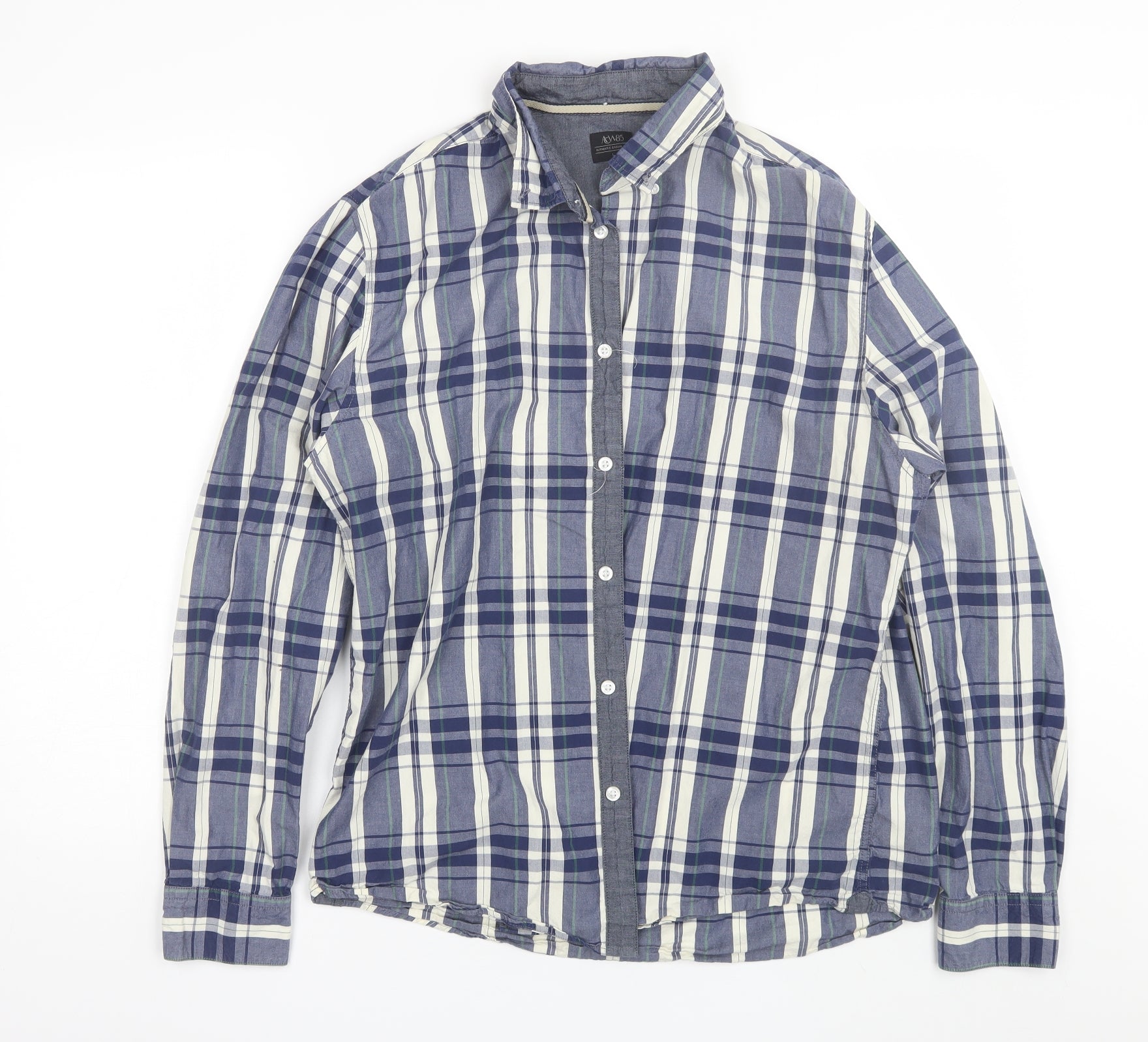 ACW85 Mens Blue Plaid Cotton Button-Up Size L Collared