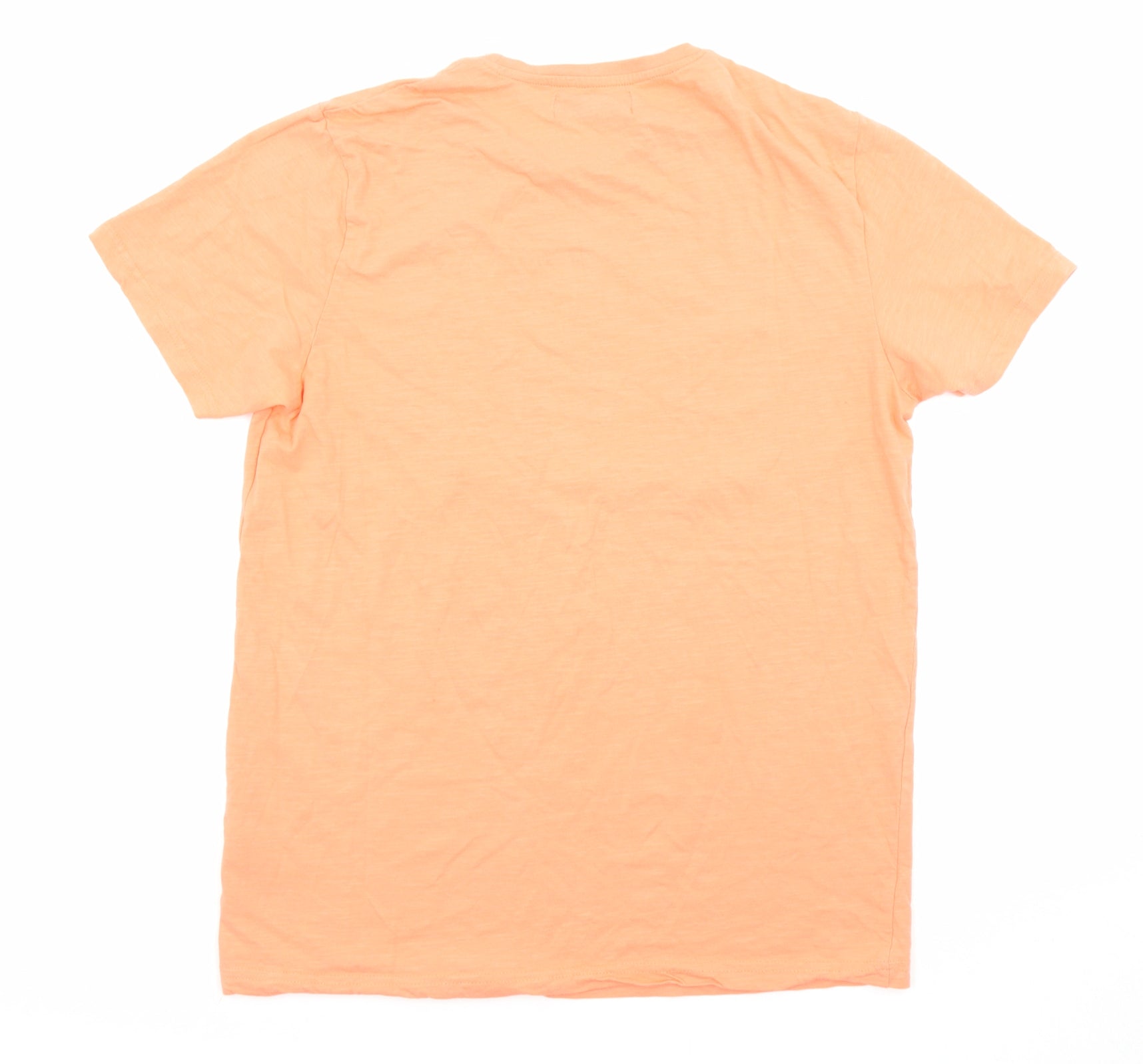 ACW85 Mens Orange Cotton T-Shirt Size M Round Neck - Beach Life, Palm Trees