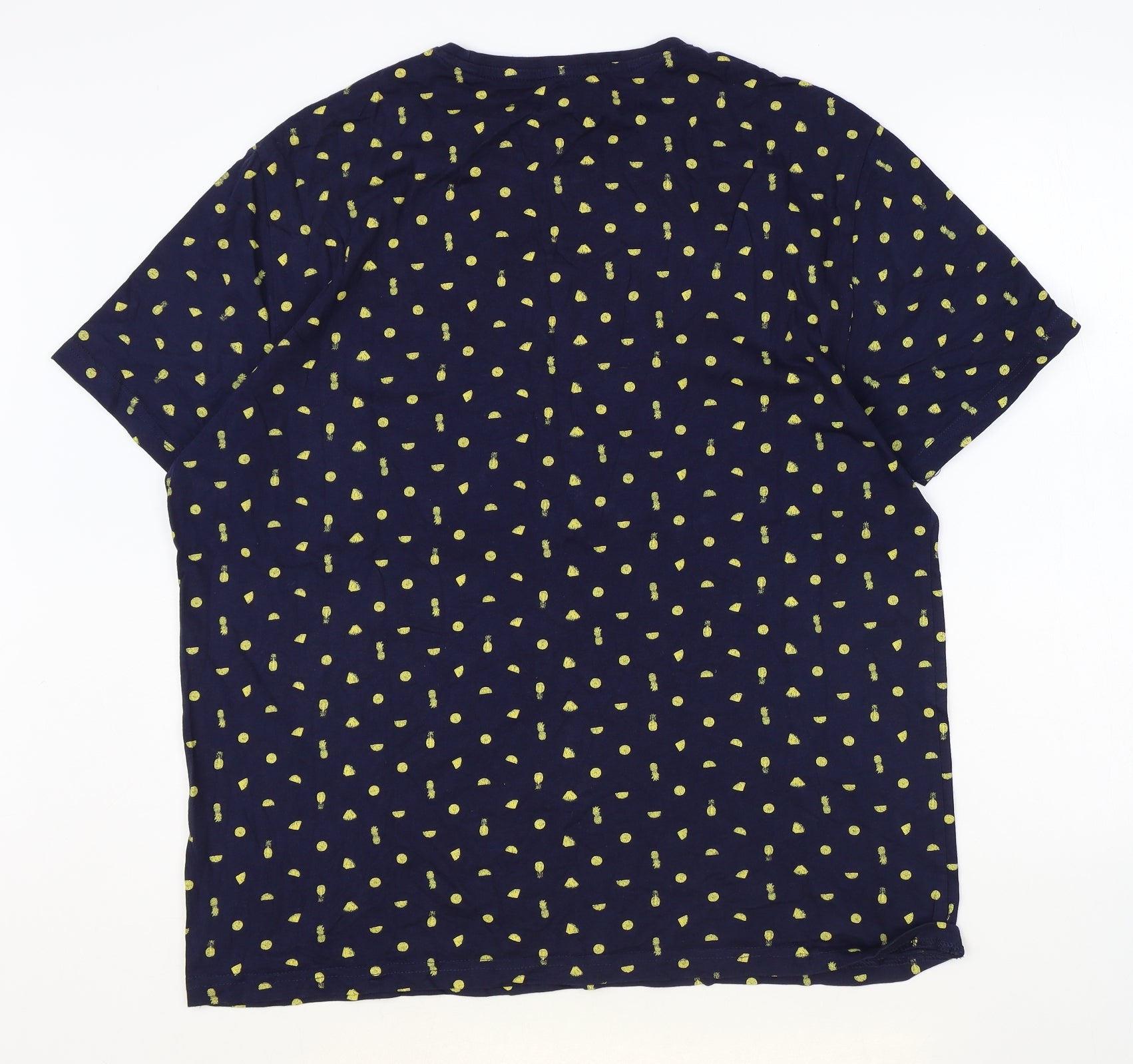 ACW85 Womens Blue Geometric 100% Cotton Basic T-Shirt Size XL Round Neck - Pineapple Pattern