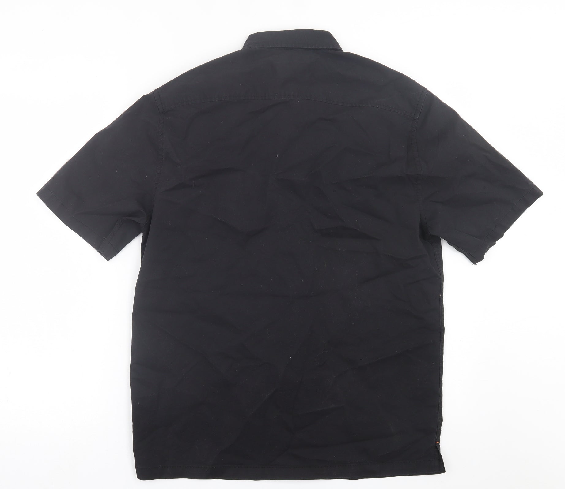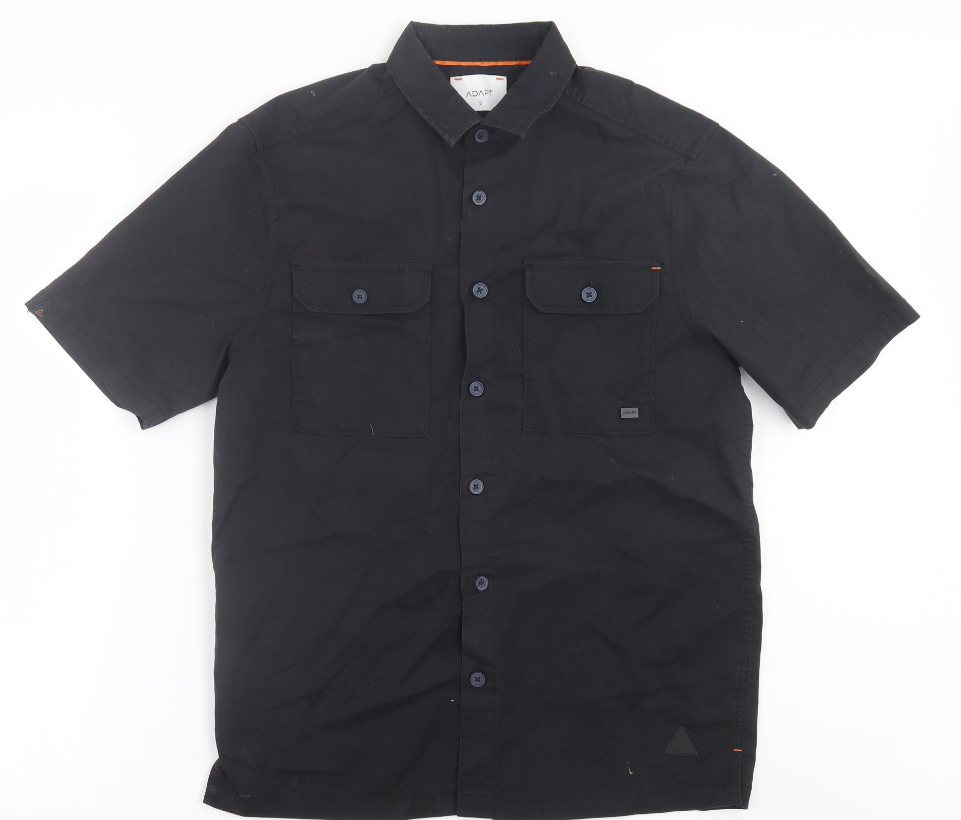 Adapt Mens Black Cotton Button-Up Size S Collared Button