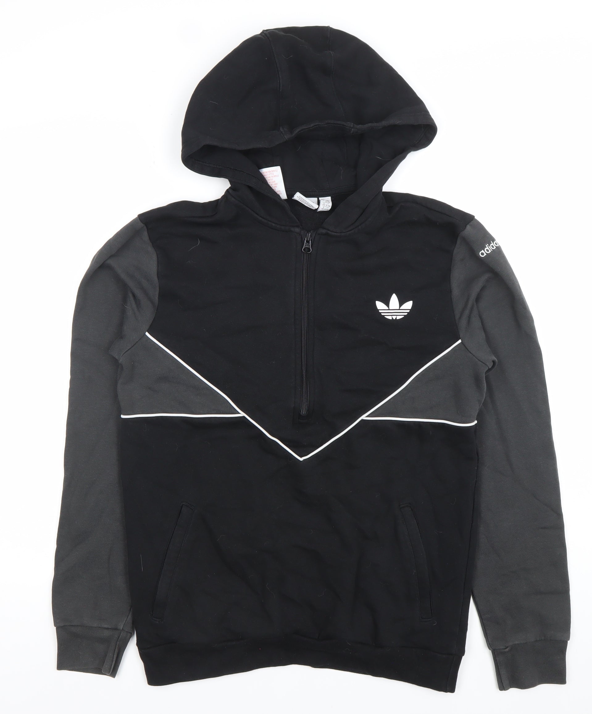 Adidas Boys Black & Grey 15-16 Years XL 1/2 Zip Hoodie Cotton Blend