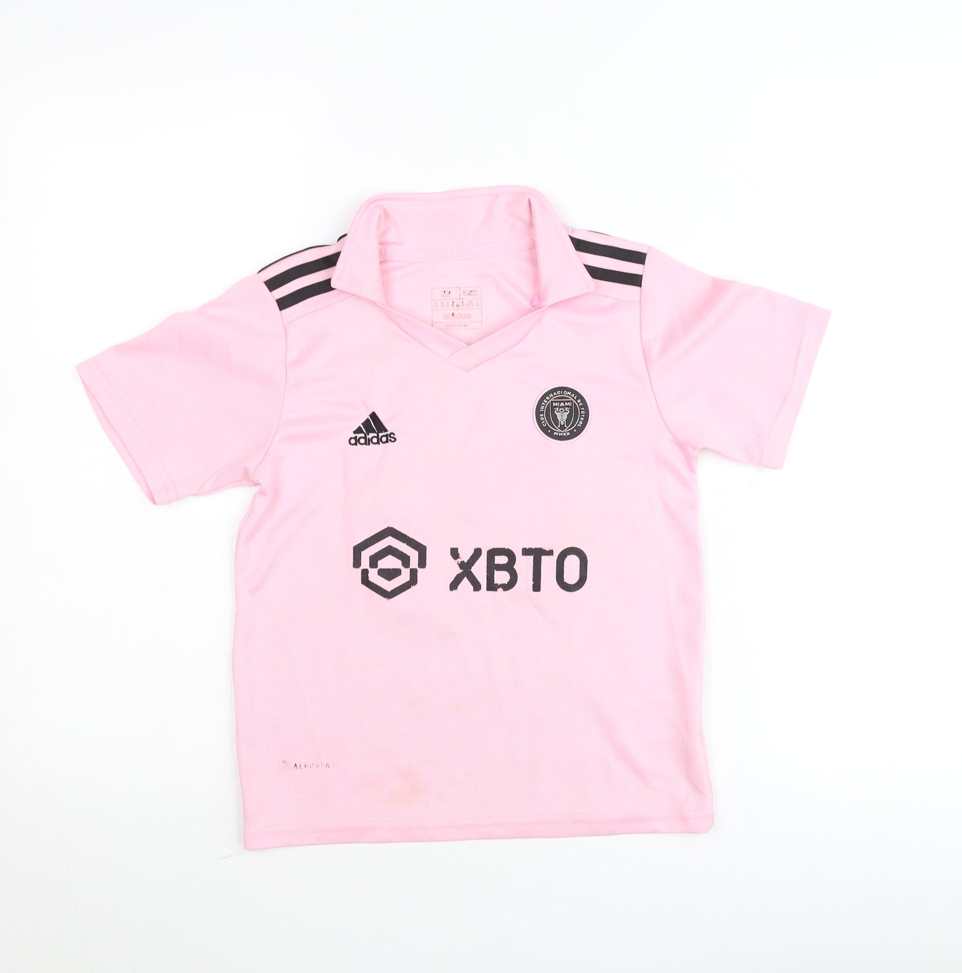 Adidas Boys Pink Inter Miami CF Messi 10 Football Jersey T-Shirt Size 6 Years