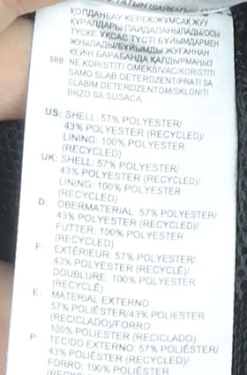 - Material Breakdown: 57% Polyester 43% Polyester (Recycled)