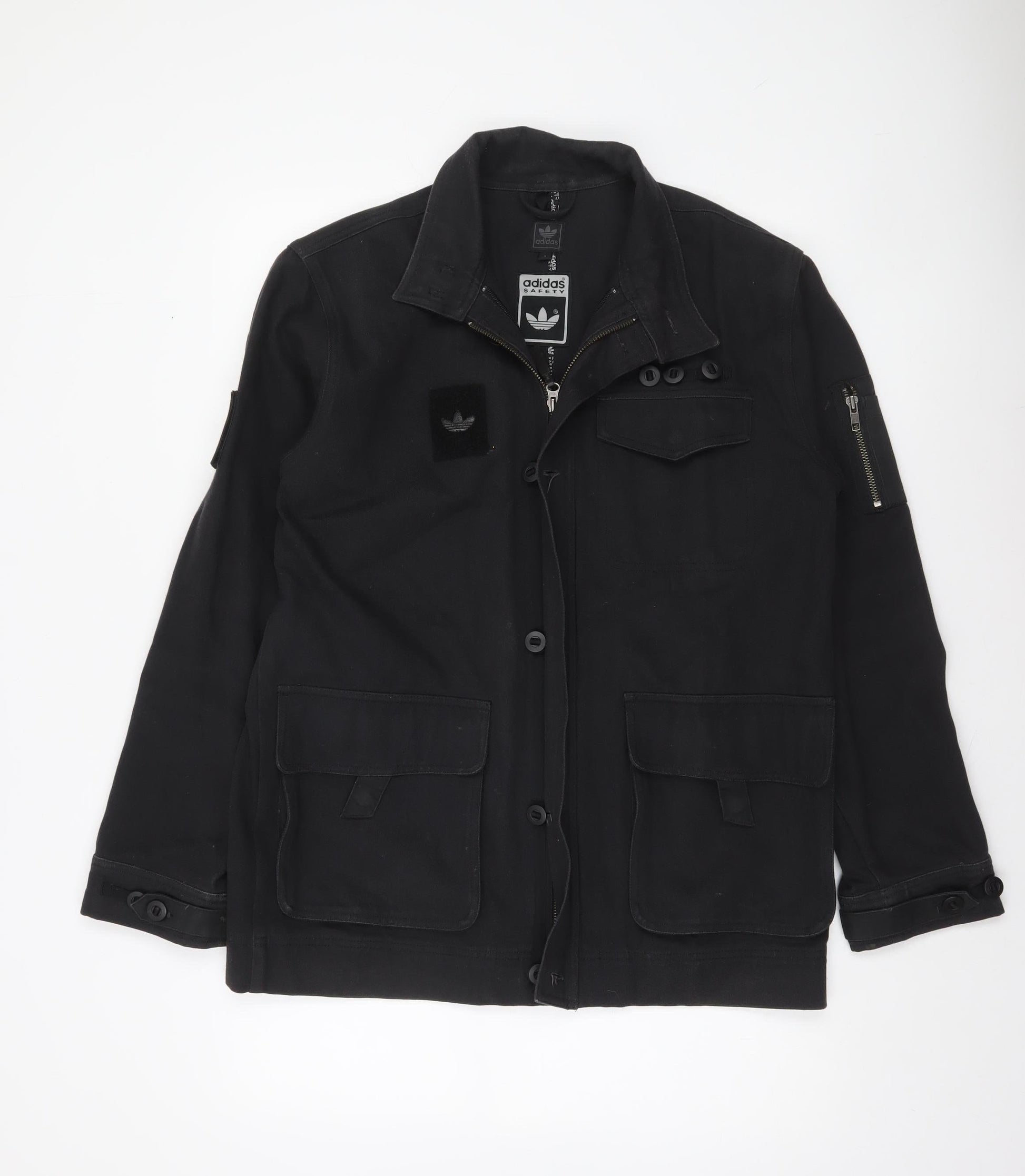 Adidas Men’s Black Military Jacket Size S Cotton Canvas Zip Button