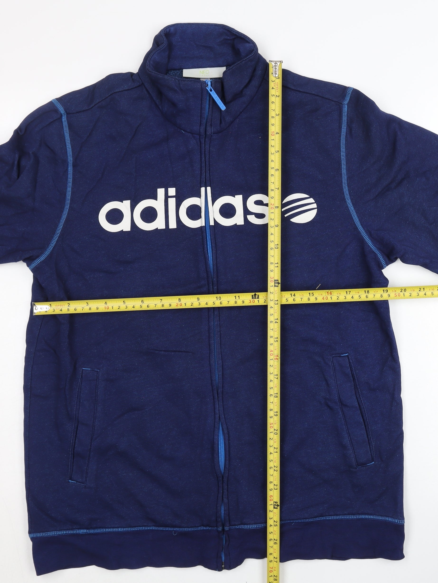 Adidas Men’s Blue Track Jacket L Regular Fit Full Zip Cotton Blend