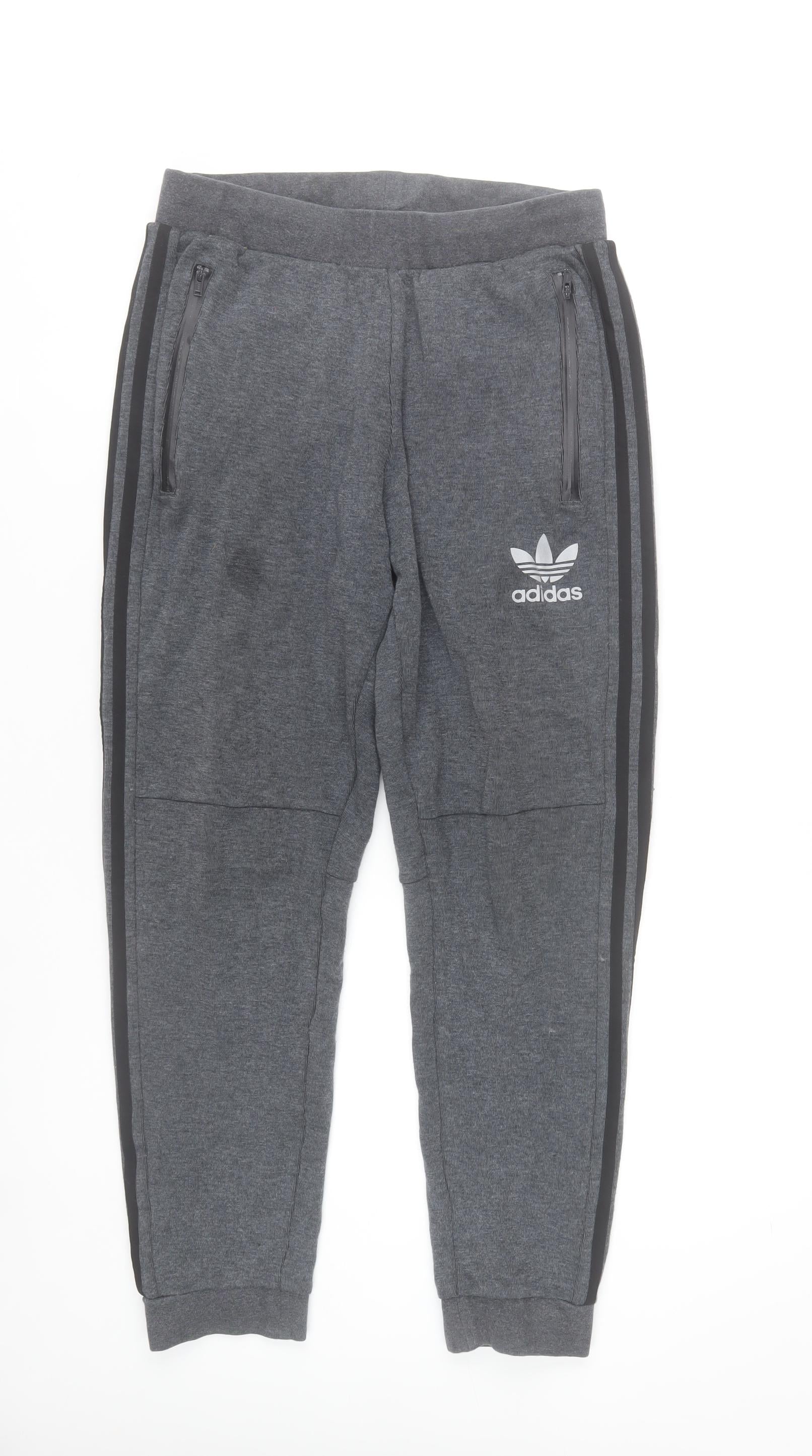 Adidas Men’s Grey Jogger Trousers M Regular Fit Cotton Blend