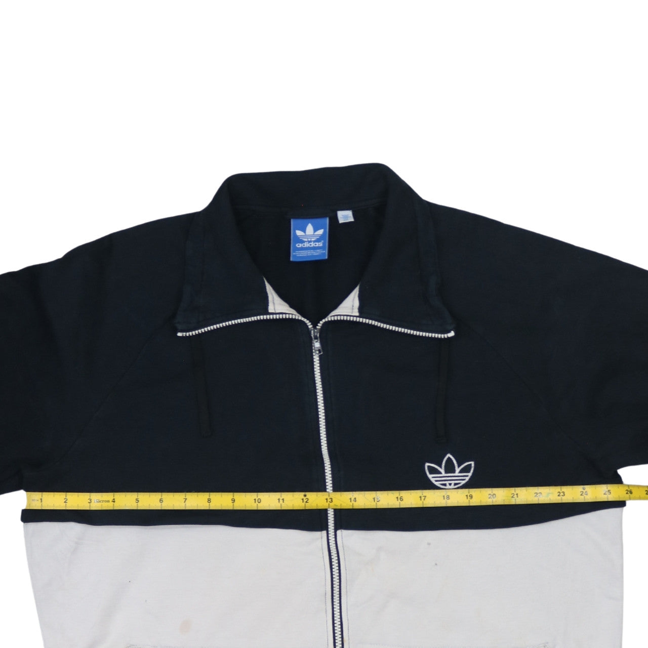 Adidas Mens 2XL Black White Track Jacket Zip Cotton Blend