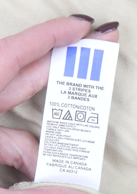 Adidas Men's Beige XL Long Sleeve Logo Cotton T-Shirt