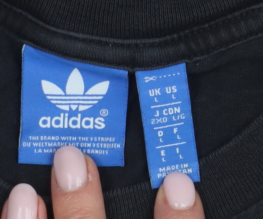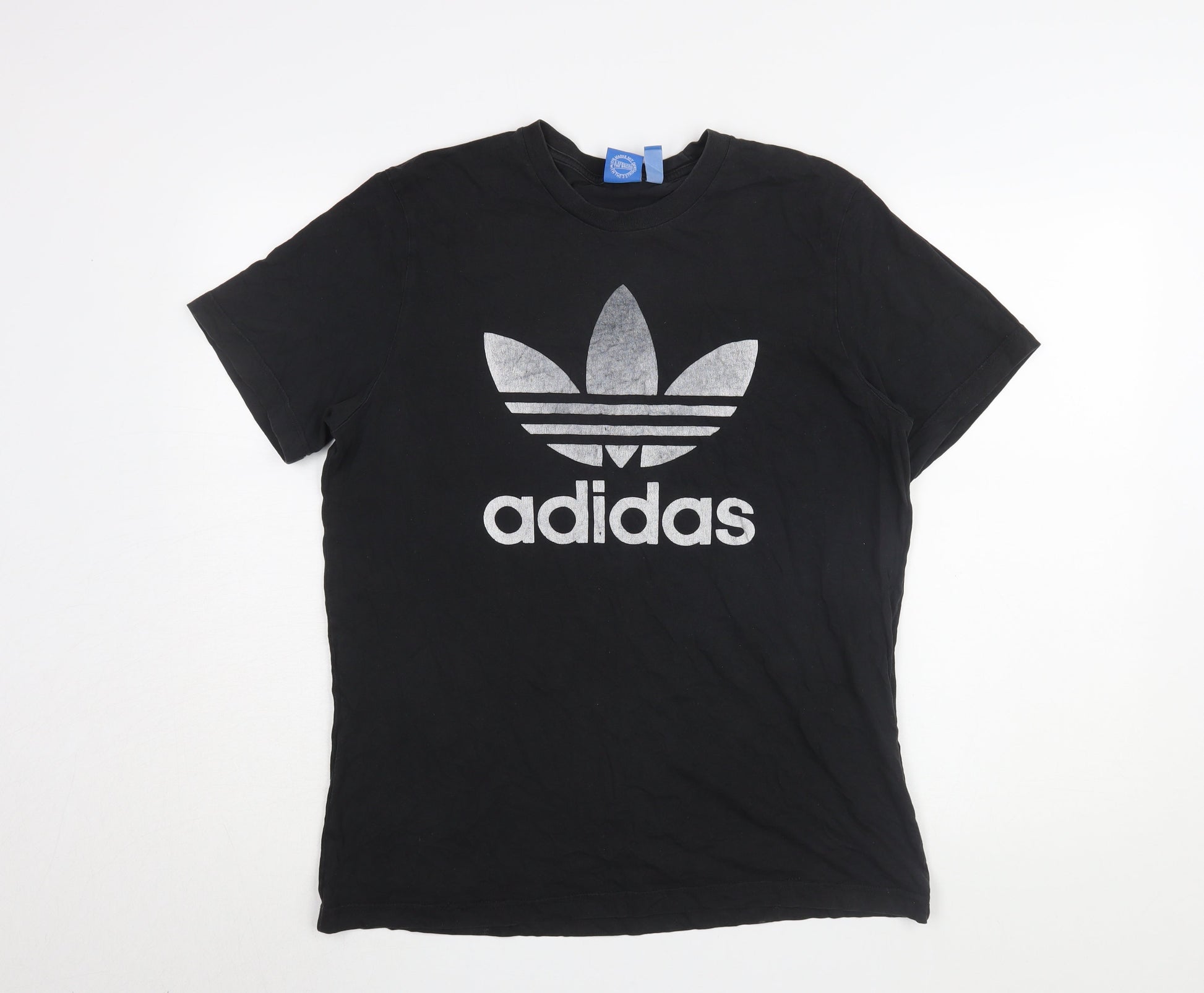 Adidas Men's Black Cotton Logo T-Shirt L Regular