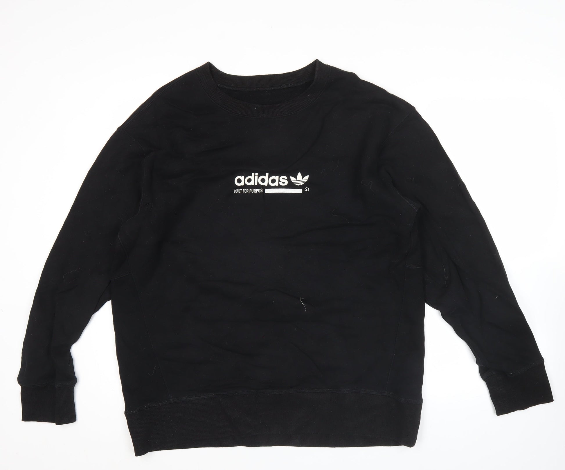 adidas Men's Black L Pullover Sweatshirt Crew Neck Logo Sports Fleece